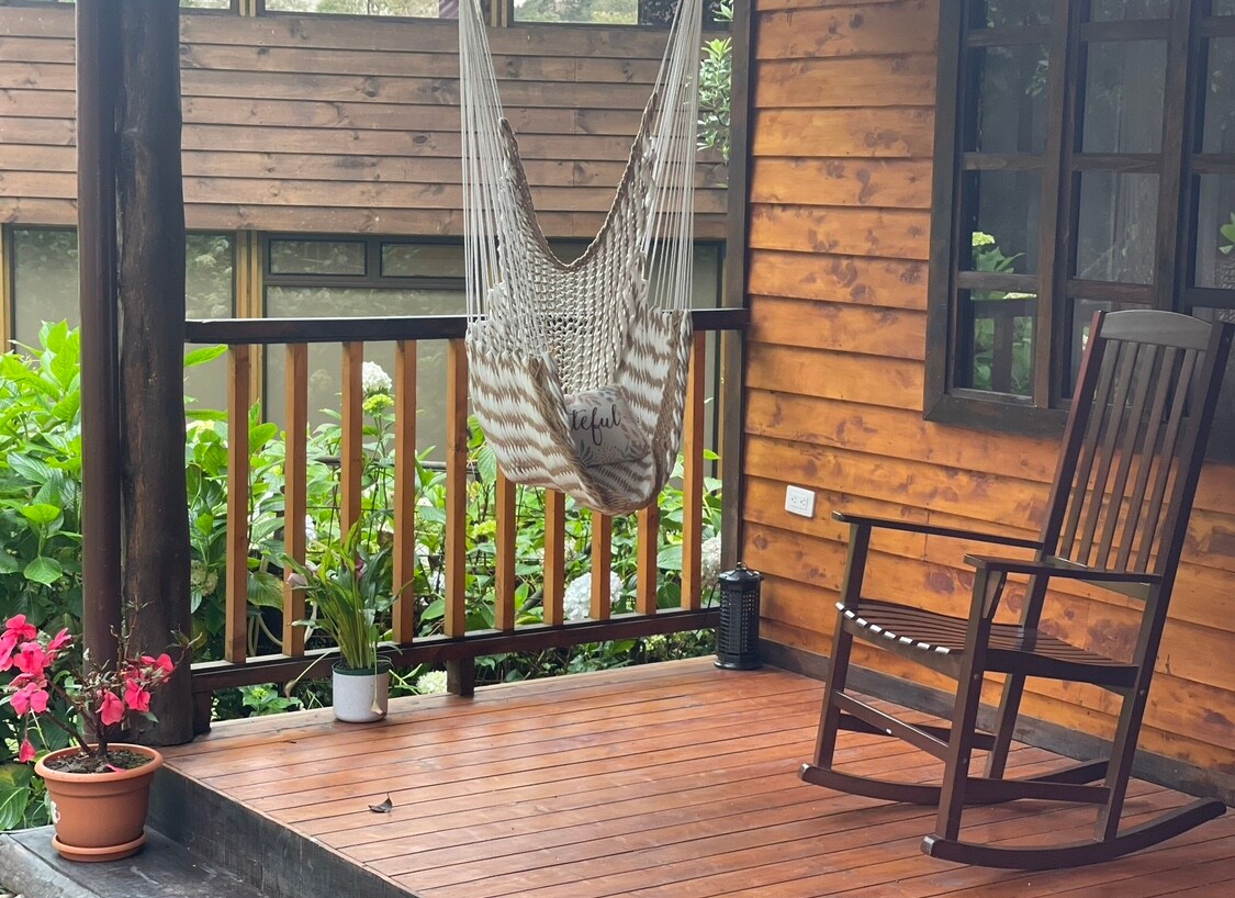 Udobna lesena koča v območju Los Santos v Tarrazúju. Prebudite se ob osupljivem panoramskem razgledu na gore. Uživajte v miru gorskih območij s svežim zrakom iz oblačnega gozda in naravnimi zvoki podeželja (ptice, veter, bližnje podeželsko življenje). Idealno za pare/družine, ki iščejo mir in naravo. Center San Marcos: 16 min Santa María Dota: 25 min San Gerardo (kvetzal): 1,5 h Vključuje: popolnoma opremljeno kuhinjo, Wi-Fi, varno parkirišče. Organiziramo oglede pridelave kave v Tarrazúju. Enostaven dostop do narave, kave in kvezalov.
