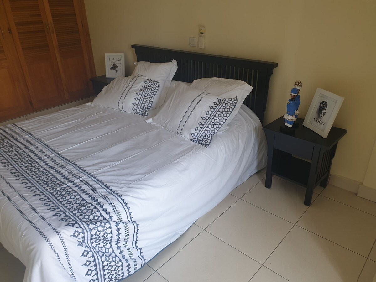 Cozy apartment in a secure residence, generator, well, and cleaning included—perfect for a wonderful stay solo or as a couple! - Bedroom with double bed, airco - Large living room: TV, CanalSat, airco, high-speed Wi-Fi - Bathroom with shower and toilet - Bed linen/towels provided - Fully equipped kitchen with loggia - parking Located in Makepe BM, just 20 meters from the cobblestone street, close to shops, restaurants, and public transport. A calm and welcoming setting for an enjoyable stay!