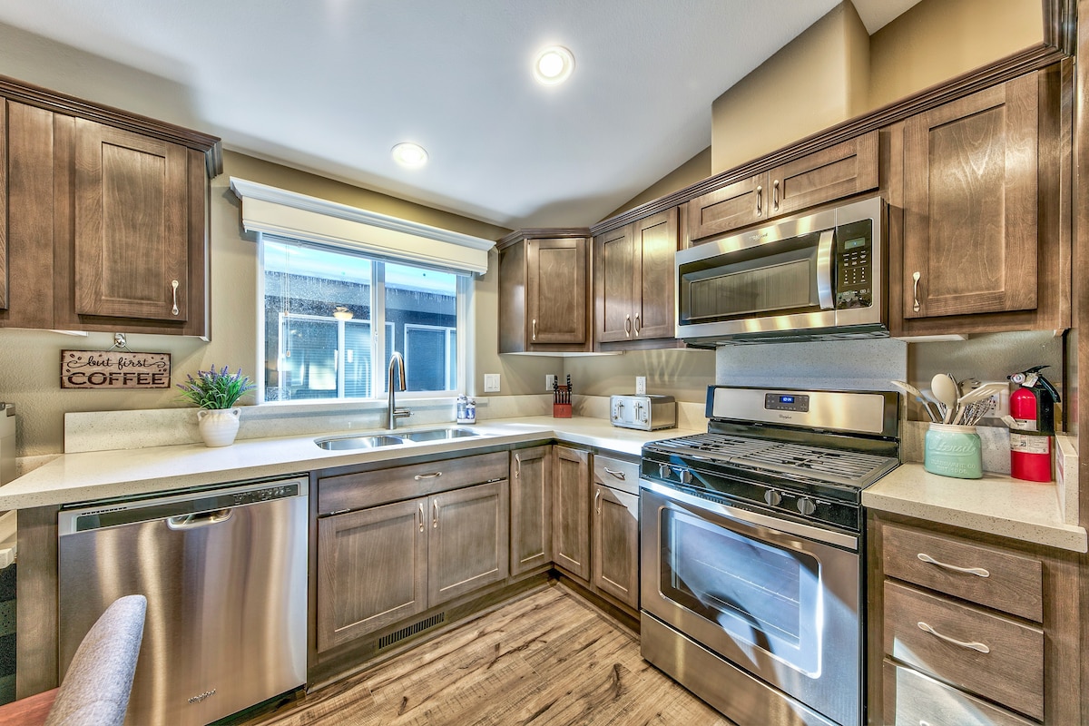 After enjoying Lake Tahoe’s many attractions, you'll love coming home to relax in our newly-built 4 bedroom, 3 bath house in a small and quiet gated community. The modern 1400 sq foot home we affectionately call "Shepherd's Getaway" can accommodate up to 8 guests if including children, or can host up to 6 if it is a group of all adults. There is an attached garage for parking 2 vehicles.