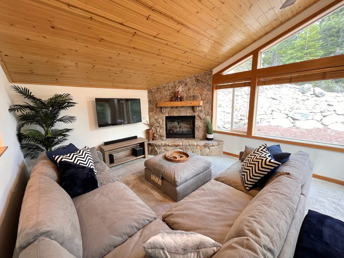 Hot tub, theater, pool table, air hockey, ping pong, bikes, snow shoes, Tesla charger, swing set... The house is modern and fun throughout. Where else will you find a canoe chandelier? Great location bordering forest service land. Walk or bike the endless trails along the Truckee river. A few minute drive to the casinos, the lake, and Heavenly ski resort. Three large bedrooms, plus many additional bonus rooms for office or reading nook space. Nearly 4,000 sq feet, renovated in 2020.