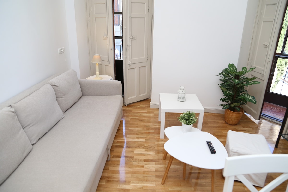 ✨ Elegant flat with Sunny patio in the heart of Madrid ✨ ✧ In line with local regulations, this residence does not operate as a tourist apartment. It is available for non-touristic stays such as work assignments, retirement visits, remote or nomadic living, medical treatments, family gatherings, and academic/ research stays. ✧ As required by Spanish law (Order TMA/1393/2024), all short-term stays must be formalized through a written rental agreement.