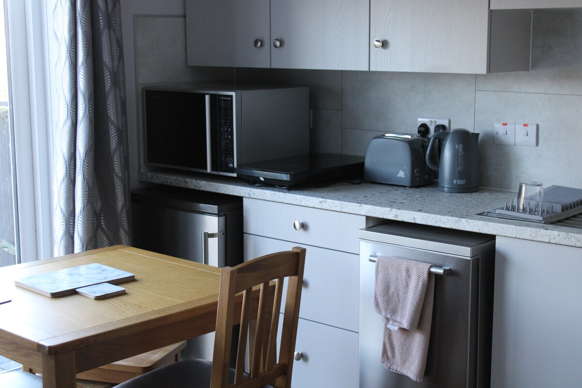 Udobna podeželska koča s čudovitim panoramskim razgledom na hribe Antrim z dnem. Burrow je luksuzna koča v pritličju z ekskluzivno uporabo zasebnega vrta, terase in masažne kadi. Stanovanje je 30 minut vožnje stran od osupljivih atrakcij na severni obali in 45 minut vožnje od Belfasta. Stanovanje se nahaja 50 m od naše hiše, zato smo v bližini, da zagotovimo prijetno bivanje.
