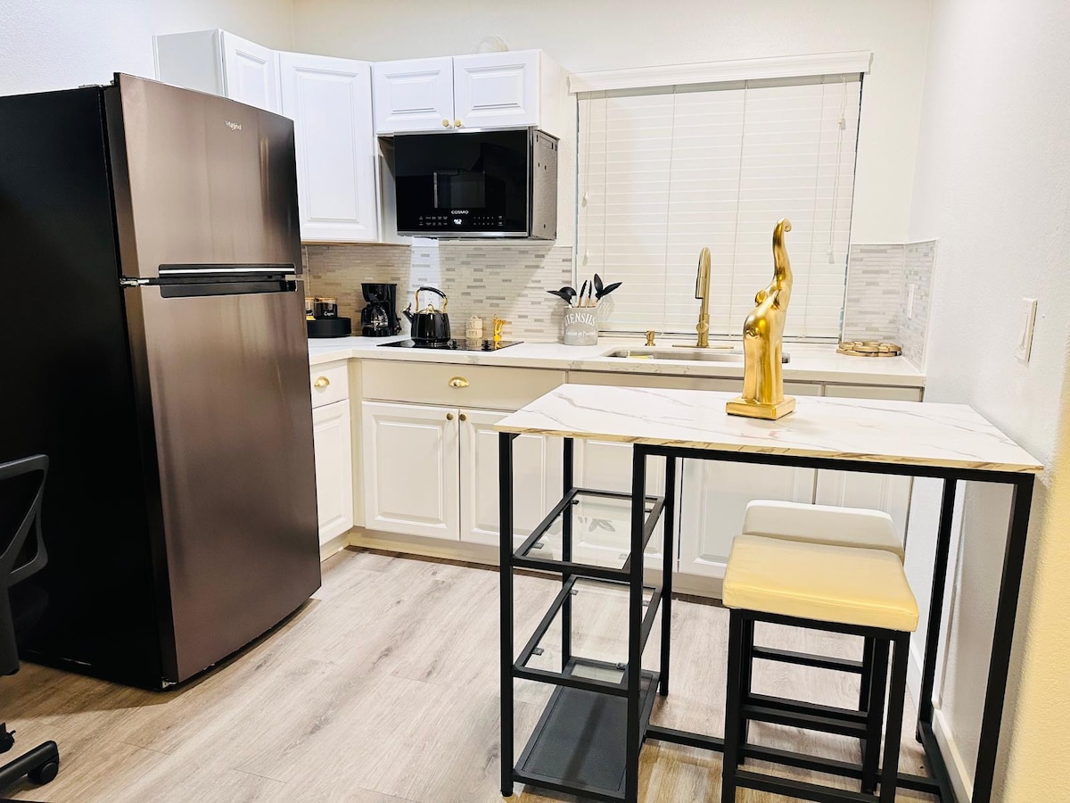 Escape to a private BOUTIQUE TROPICAL STUDIO designed for comfort, style, and relaxation. This thoughtfully curated retreat features a KING BED, cozy seating area, SMART TV, FULLY EQUIPPED KITCHEN, PRIVATE PATIO, HIGH-SPEED WIFI, IN-UNIT WASHER & DRYER, and FREE PARKING. Located in a QUIET RESIDENTIAL NEIGHBORHOOD about 15 MINUTES FROM THE STRIP & DOWNTOWN, it’s perfect for couples, solo travelers, business stays, and longer visits.