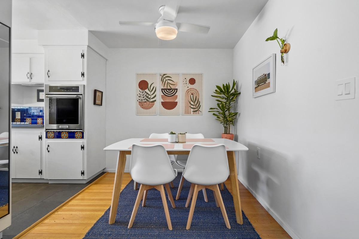NA NOVO PRENOVLJENA>Svetla, zračna ena spalnica v osrčju zgodovinskega središča Long Beacha. Do ulice Pine Street ter trgovin in restavracij Promenade se lahko sprehodite peš. NA VOLJO JE S PARKIRNIM MESTOM V SKLOPU PRENOČIŠČA. Kratka vožnja od vašega parkirnega mesta do Shoreline Villagea, Cruise Ships, Queen Mary. Minute do plaže, kolesarske poti. Belmont Shore, Neapelj (10 minut vožnje) Orange County in Los Angeles. Disneyland je oddaljen 30-40 minut, odvisno od prometa.