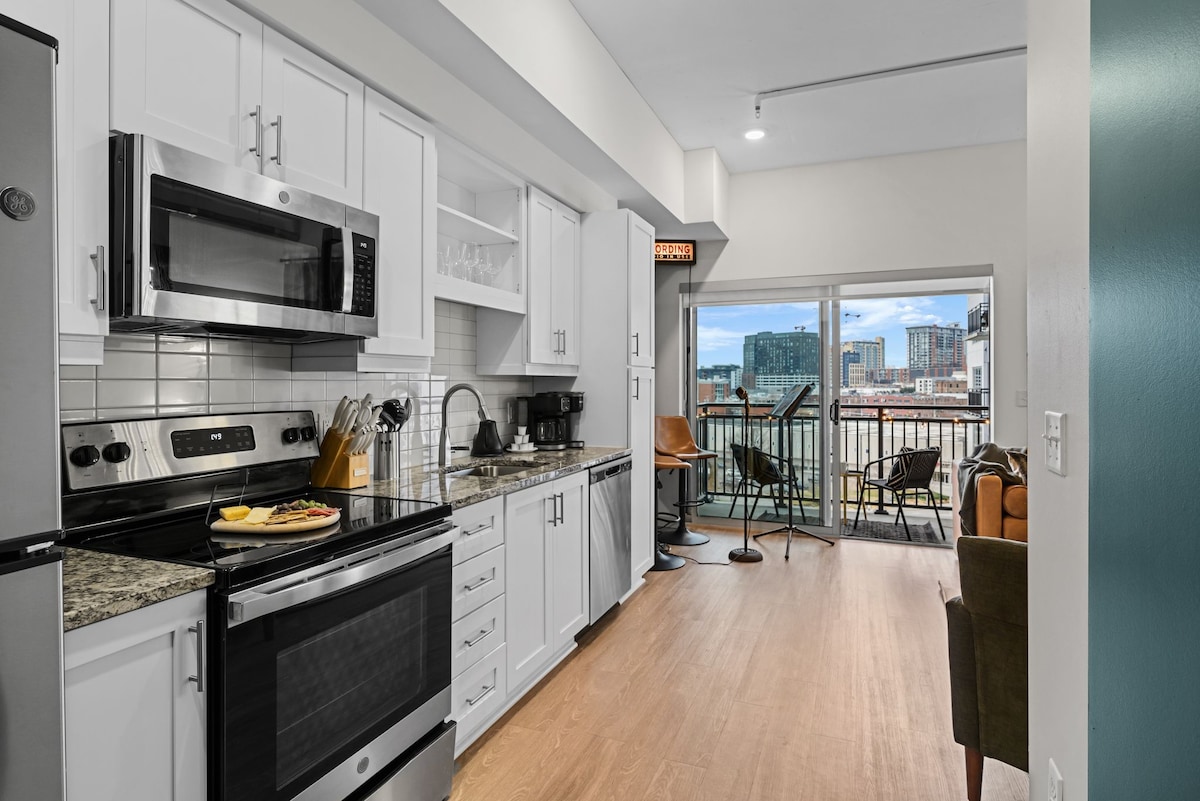 Immerse yourself in Nashville’s vibrant energy at this sleek one-bedroom condo, just moments from Broadway’s legendary buzz. This stylish luxe retreat masterfully blends sophisticated design with cozy comfort—ideal for romantic getaways or business travelers needing a polished, hassle-free base. Every thoughtful detail ensures a seamless, elevated stay, with iconic attractions, dining, and live music right at your fingertips.