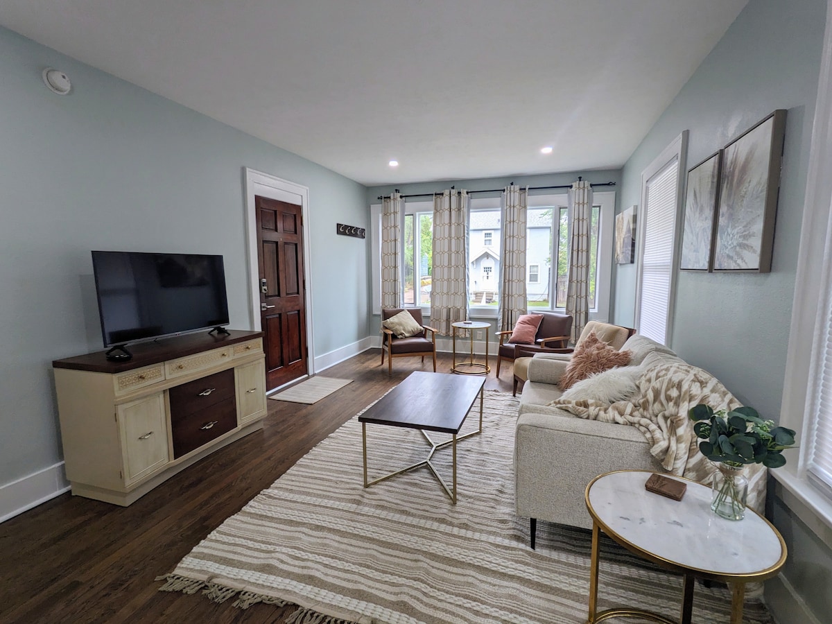 To lepoto Dundeeja lahko najdete v eni najbolj iskanih sosesk v Omahi. Ne samo, da se nahaja na priročni lokaciji v 5 minutah vožnje do stadiona Charles Schwab in UNMC ter 10 minut stran od živalskega vrta Henry Doorly, ampak je bil tudi pred kratkim prenovljen. Ta čudovit bungalov ponuja 2 spalnici (3 postelje iz spominske pene) / 1 kopalnico, vhod brez ključa, pametno televizijo, hiter Wi-Fi in pralnico v enoti. Parkiranje je na voljo na ulici ali na sosednjem dovozu.