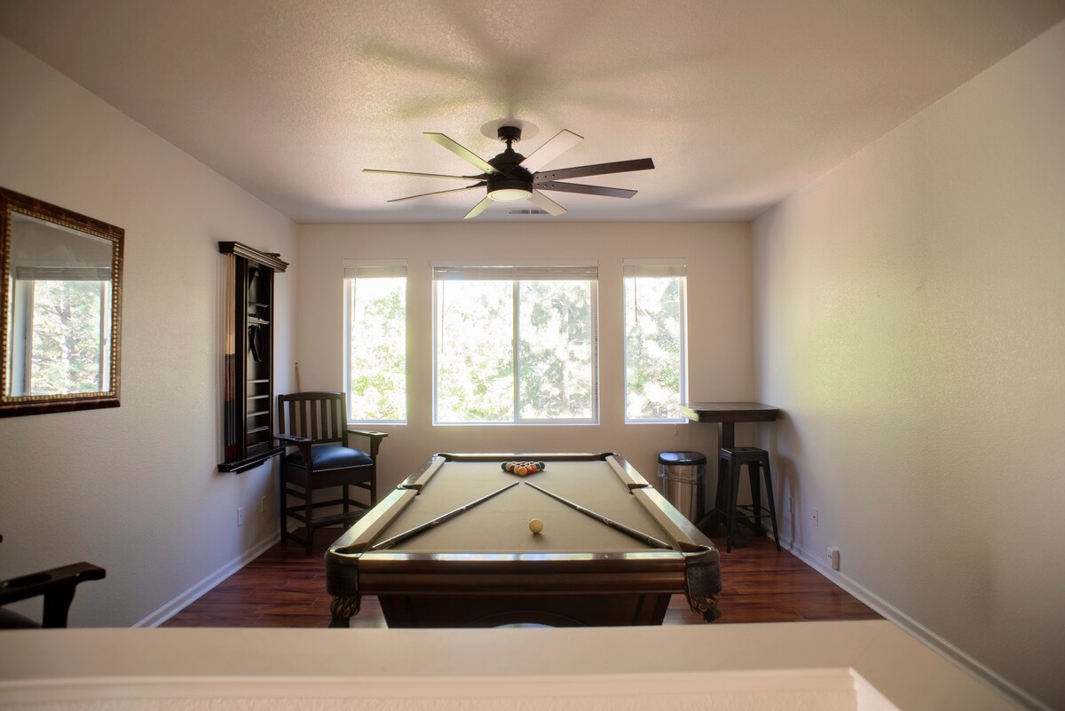 The whole group will enjoy easy access to everything from this centrally located home. Northwest Reno is the best location to stay, no matter where you plan on going or need. This house is ready for large groups! Spacious with 8 beds strategically placed to maximize livable area. 4 queen beds 2 twins daybeds 1 full size in bunk 1 full sofa pullout downstairs all featuring premium bedding Backyard features 90% shade cover, offering a refreshing outdoor relaxed chillout.