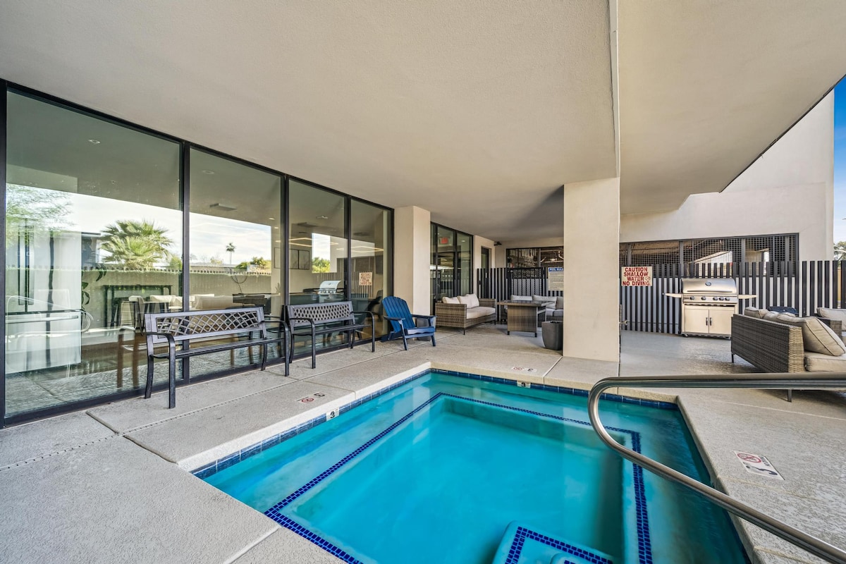 Quiet and newly remodeled condo, located in the heart of Old Town Scottsdale, just a 300 yard walk to night life, shops and restaurants. 1400 Sq Ft, 2 living-rooms, pool and hot-tub, 1 car garage, private entry with self check in. Private patio with an outdoor kitchen, 2 burner stove, 4 burner grill, fridge/freezer, smoker, MurphyBar, Solo Smokeless fire pit, Bluetooth speaker. Shuffleboard table, 60" TV, 250Mbps Wi-Fi. 2 shower heads in the master bathroom. Soaking tub in the guest bathroom.