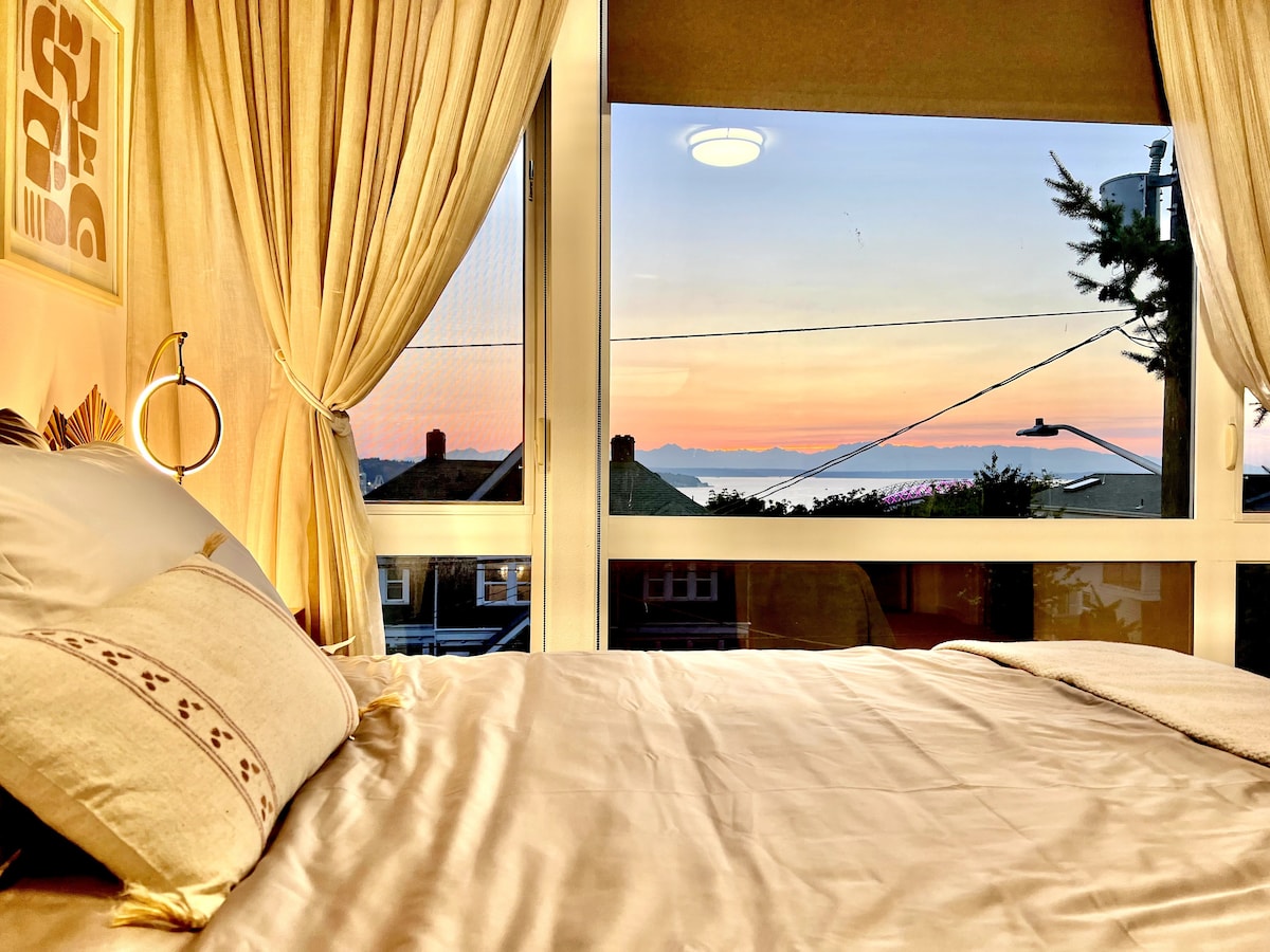 Redka najdba! Očarljiv sodoben oddih za vaš obisk Seattla! Uživajte v nepozabnem doživetju v osrčju Seattla - z najboljšim razgledom na vesoljsko iglo in neverjetno lokacijo! Dobrodošli v svojem sodobnem in elegantnem prenočišču Lower Queen Anne. Uživajte v najbolj osupljivem razgledu na Space Needle/obzorje v Seattlu. Popolnoma se nahaja v prestižni soseski, le nekaj ulic stran od glavnih znamenitosti, kot so Space Needle, Kerry Park, Climate Pledge Arena, številne restavracije in kavarne, raj za sprehajalce!