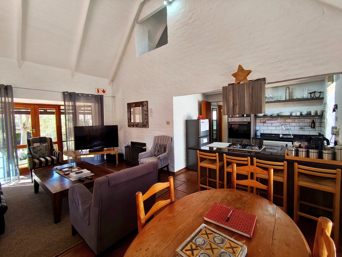 Samopostrežni 3-sobni, 2 kopalnici hiška na deželi za 5 oseb, ki se nahaja v varnem in slikovitem kompleksu Critchley. Salon z odprtim načrtom, jedilnica in kuhinja. Kamin, 2 televizorja s polnim šopkom DStv in zunanjostjo Weber braai. Brez hišnih ljubljenčkov in otrok, mlajših od 13 let. Ključe lahko prevzamete v Harrie 's Pancakes pred 17:00. Za pozne prihode je treba skleniti alternativne dogovore.