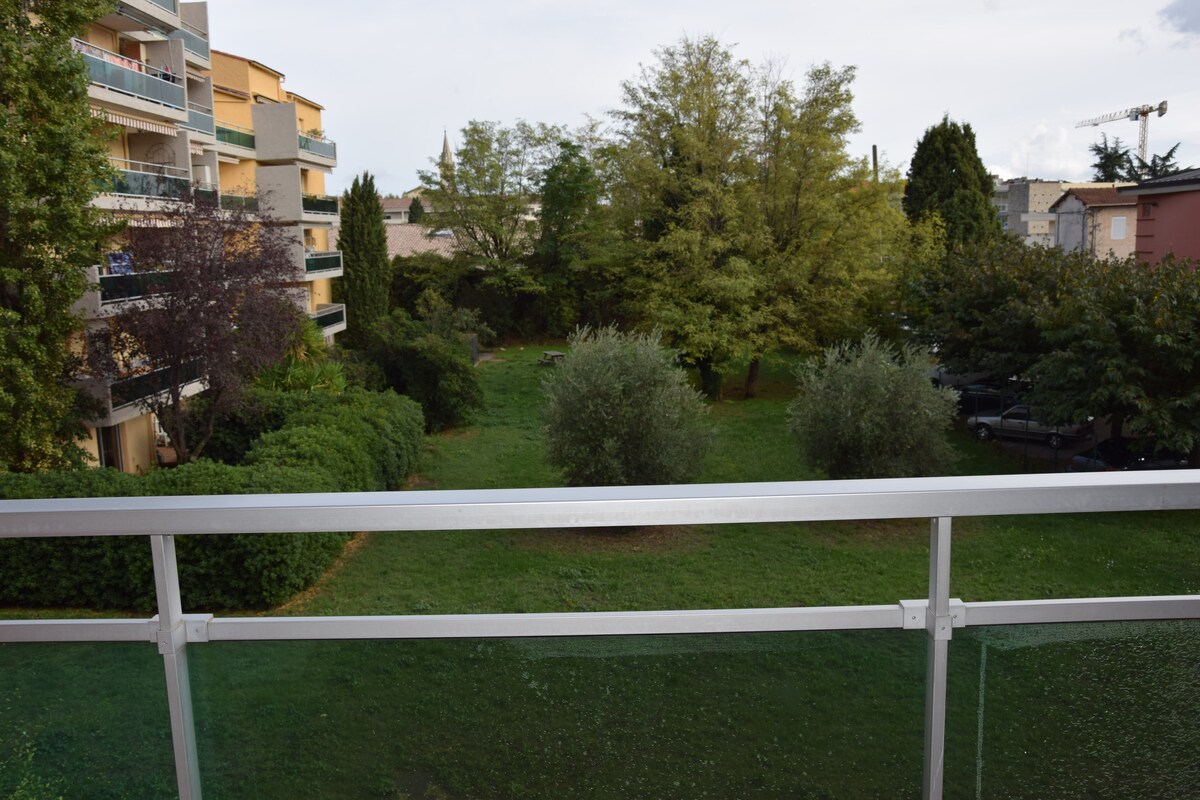 1 km od središča Draguignana, ki se v idealnem primeru nahaja med morjem, jezeri in soteskami. (30 min od plaž in 1 uro od sotesk Verdon in Lac de Ste Croix) Najemamo neodvisen 20 m² popolnoma opremljen studio (kuhinja, raztegljiva fotelja, tuš soba, WC, TV, Wi-Fi) Namestitev je opremljena tudi s klimatsko napravo. Možnost parkiranja. Idealno za 2 osebi. Možnost dostopa do bazena (ni ogrevano) z doplačilom, 10 €/ dan se plača na lokaciji.