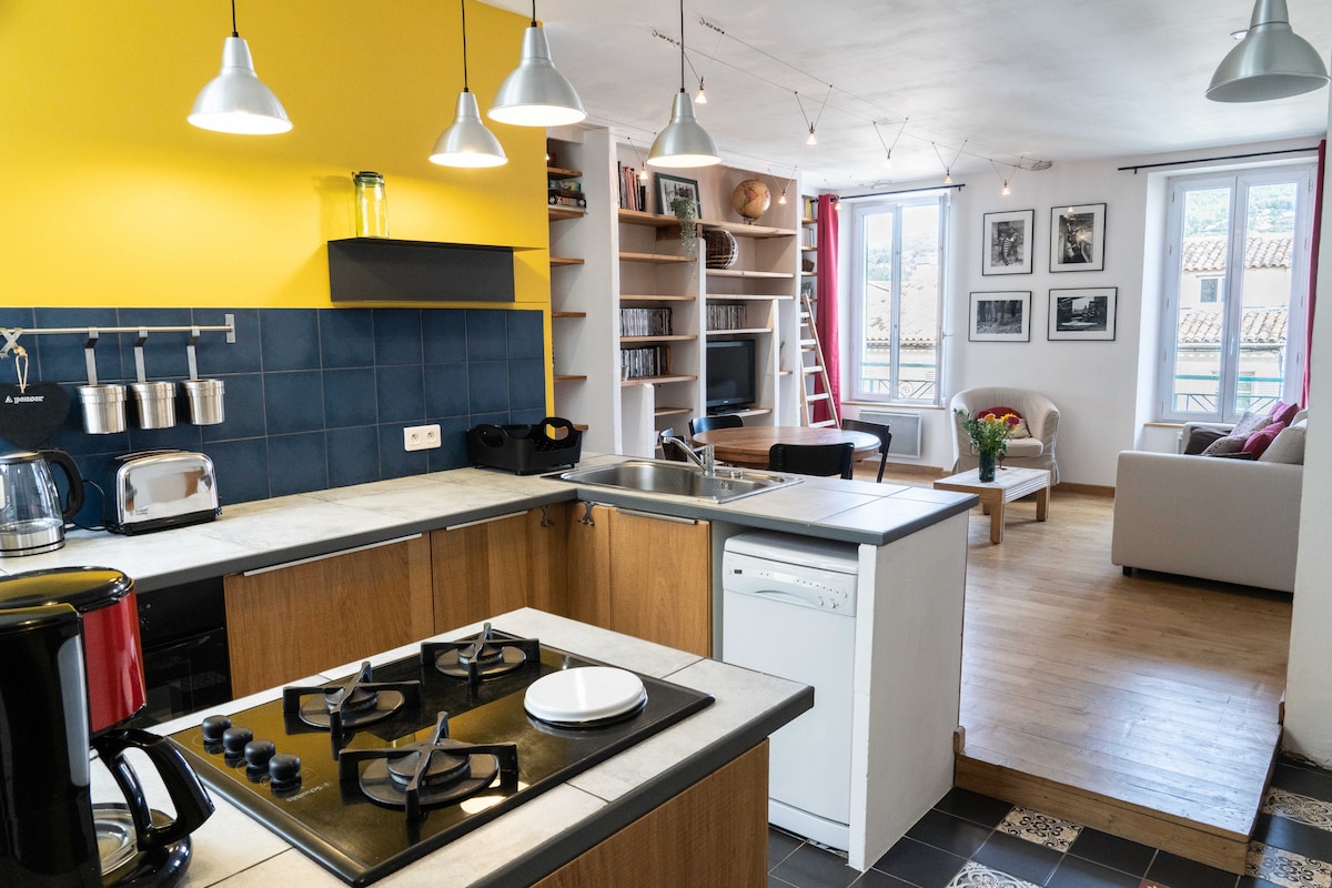 Pozdravili vas bomo v našem stanovanju, ki se nahaja v osrčju Draguignana, na čudoviti nakupovalni ulici in ulici za pešce. V zgodovinsko stavbo boste vstopili skozi izrezljana lesena vrata, ki se odpirajo v prostoren vhodni hodnik s šahasto desko. Široko stopnišče vas bo pripeljalo do prvega nadstropja, kjer boste našli prenovljen in sodoben prostor, ki ponuja vse udobje, ki je potrebno za prijetno bivanje. Opomba: za daljša bivanja je lahko na voljo parkiranje kot možnost