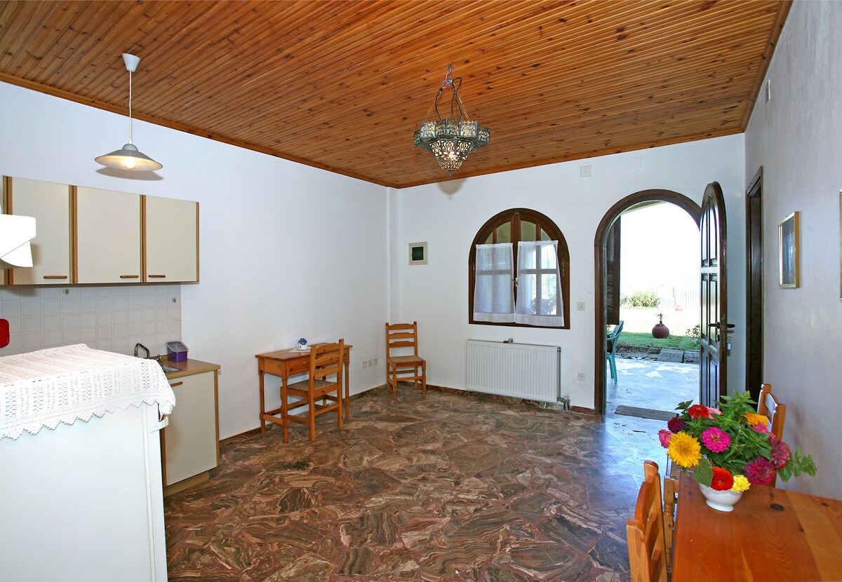 Popolnoma prenovljena, kamnita zgradba, zgrajena na vrhu treh starodavnih grških jam. Nekoč je bila to Beneška tovarna za oljčno stiskanje. Zdaj je to sodobna počitniška hiša z dvema bazenoma (notranjim in zunanjim) ter ekološkim zelenjavnim in lokalnim sadnim vrtom