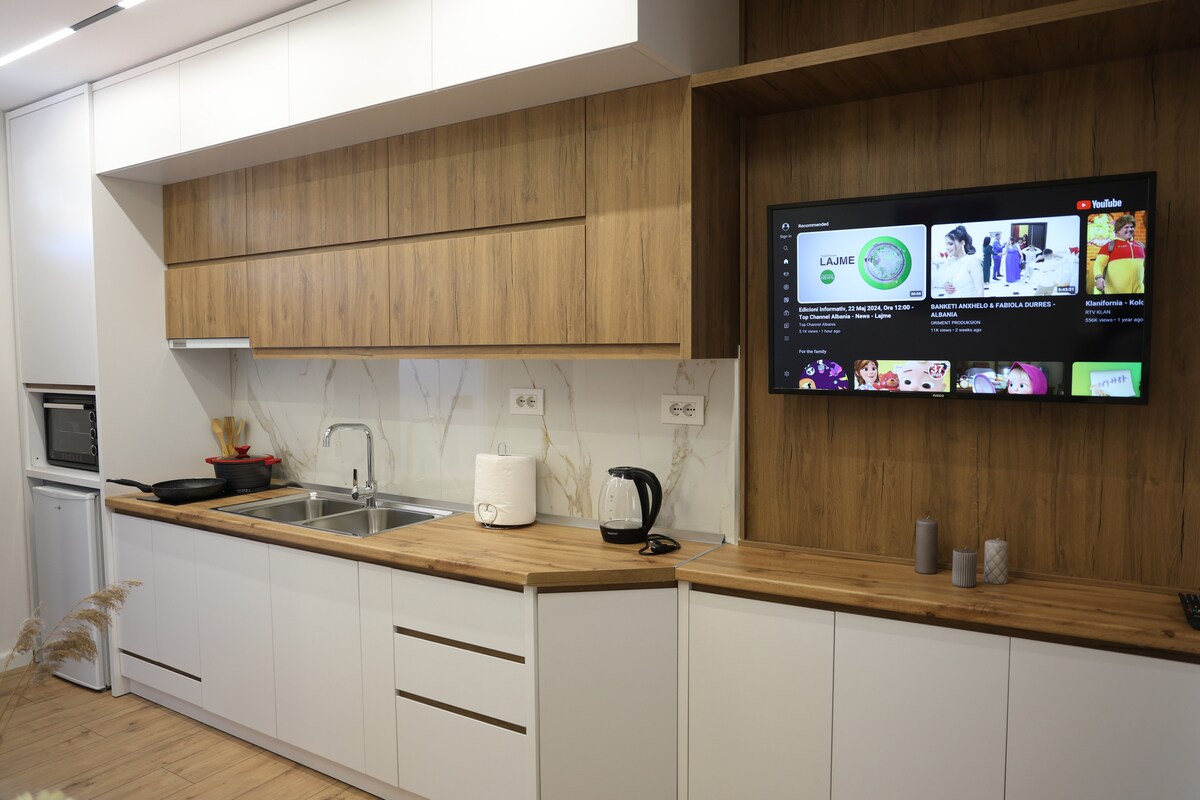 Ustvarite doživetje in spomine v našem stanovanju, ki se nahaja v Beratu, ob vznožju grajskega hriba. Naše stanovanje je udoben prostor, primeren za vsakogar, ki želi uživati v ogledu 2400 let starega mesta Berat. 57-metrski kvadrat ponuja vse, kar potrebujete, od spalnice do dnevne sobe, kuhinjske kopalnice in vrta. Stanovanje ima vse potrebne storitve, brezplačen brezžični internet, kuhinjo, klimatsko napravo, pametno televizijo, CCTV, brezplačno parkiranje itd. Ima tudi zelo lepo notranjo opremo, da se boste počutili kot doma.