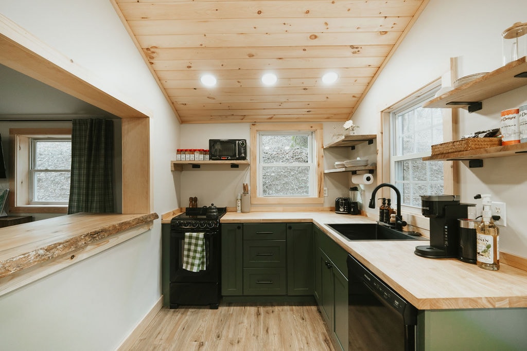 Čudovita koča je raj za ljubitelje narave z brbljajočim potokom, ki nudi tolažbo za telo in dušo. To je zatočišče, kjer boste lahko občutili prisotnost Boga, medtem ko se sprostite in globoko vdihnete. To prenočišče ima glavno spalnico z zakonsko posteljo (Queen) in drugo spalnico z enojno posteljo. Kuhinja je delno opremljena (lonci, posoda, kavni aparat, majhen hladilnik in starinski štedilnik, vendar brez delujoče pečice). Plinski kamin doda udobje bivalnemu prostoru.