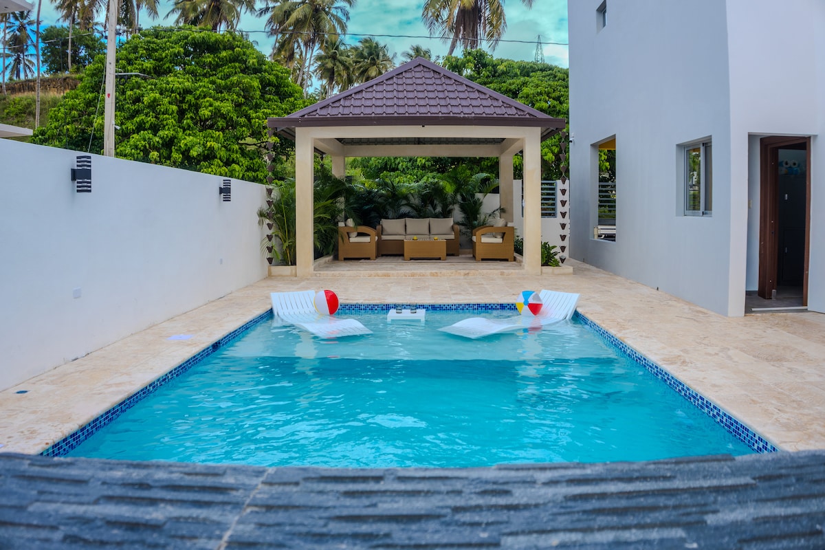-LIMITED TIME OFFER-: name ✔} Brezplačno dnevno čiščenje. ➡Zasebna vila v Matancitasu, Nagua. ➡ 270 m^2 ➡Zasebni bazen ➡2 min Oddaljenost od avtomobila Playa Los Gringos in Playa Poza de Bojolo. ➡2 min vožnje z avtomobilom do supermarketov in restavracij V ➡sklopu hotela, zavarovano, ograjeno parkirišče. ➡Popolnoma opremljena kuhinja s pralnim strojem. ➡Žar