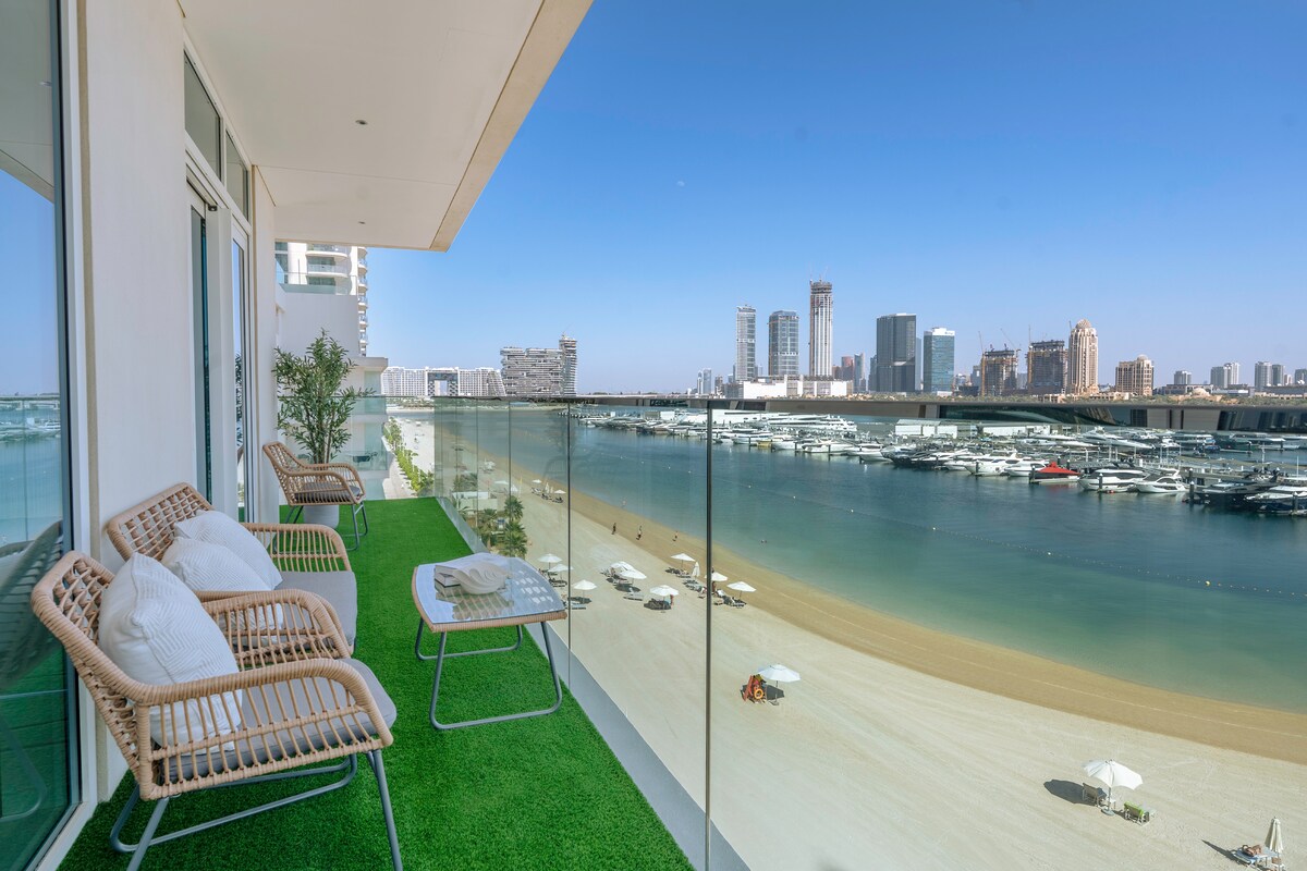 Luxury living in Port de La Mer! Enjoy a King-size Four Seasons bed with premium mattress & linens, sofa bed for 2, safe vapor fireplace, Dyson hairdryer, De’Longhi coffee machine & yoga mat. The dining table doubles as a workspace. Pool, parking & private beach access included. Steps from the sea, cafés nearby, 15 min to Dubai Mall & 20 min to the airport – perfect for guests seeking something special!