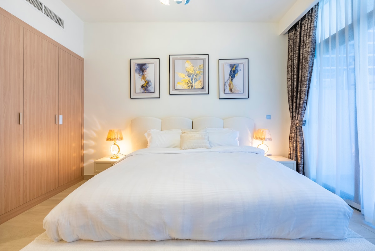 Uživajte v elegantnem doživetju v tem bivališču, ki se nahaja v središču mesta. Sprostite se v tem mirnem in elegantnem bivališču. Bivališče je polno funkcij in vam daje priložnost, da bivate v zeleni skupnosti s pogledom na Burj Khalifa, čudovito enosobno stanovanje z vsemi objekti. Uživajte v mirni bujni zeleni pokrajini Spletišče ☑️10 minut do nakupovalnega središča Burj Khalifa in Dubai Mall ter CESTE SHZ ☑️14 minut do letališč v Dubaju ☑️10 minut do zatočišča za prostoživeče živali Ras Al Khor ☑️18 minut do Palm Jumeiraha