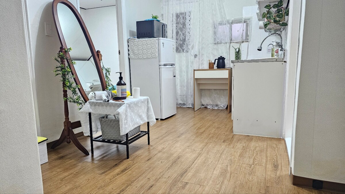 Soba 101: »Čistoča je izjemno pomembna!« To upoštevamo pri upravljanju prenočišča. Vsa posteljnina in brisače so oprane s sterilizacijo pri visoki temperaturi in likane pri visoki temperaturi, zato so vedno pripravljene s svežim občutkom. Posteljnina zagotavlja hotelsko kakovost Pred kratkim smo dodali raztegljiv kavč Posodobite prostor, da bo udobnejši Prenovili smo jo v prenočišče z »prijetnim lesnim vzdušjem«. Gre za dvosobno nastanitev, vendar je udoben prostor, ki ga temeljito upravljamo ✨️in pri tem ohranjamo čistočo kot glavno prednostno nalogo✨️. Razporeditev in dekoracija se lahko nekoliko razlikujeta glede na letni čas. Nahaja se v prvem nadstropju v mirnem stanovanjskem območju, blizu postaje podzemne železnice Dunchon-dong.