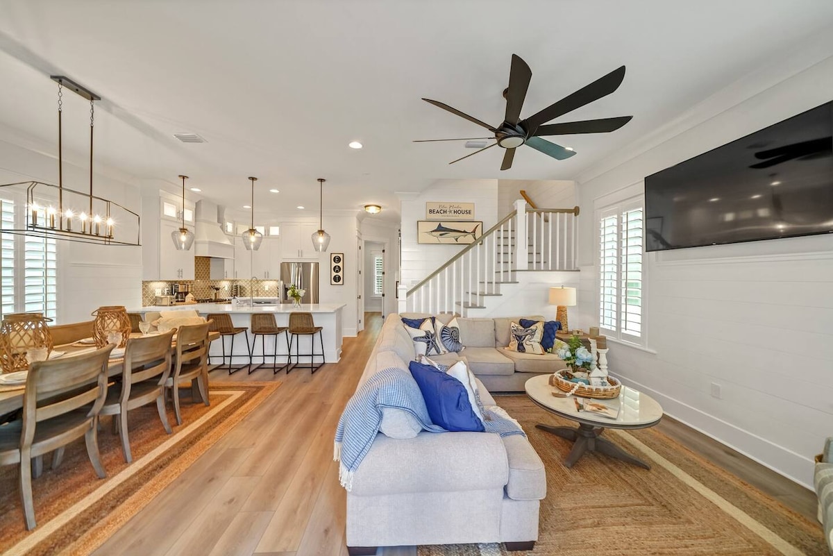 Pridite v raj na 30A! Posebnosti: PLAŽA JE (2 KM STRAN) 5 postelj, 4,5 kopalnice, za 14 oseb 0,5 milje do BELIH peščenih plaž Štirisedežni vozički za golf morajo biti stari 25 let, da lahko upravljajo 4 kolesa za odrasle Bazen skupnosti je KORAK stran! 2 terasi/veranda 5 zakonskih postelj! Soba s pogradom v 3. nadstropju 2 mojstra z apartmaji Pralnica s pralnim/sušilnim strojem Roku TV je v vsaki sobi (BYO gesla) Wi-Fi Namenski pisarniški prostor! Fantastično nakupovanje in restavracije v bližini Lokacija!