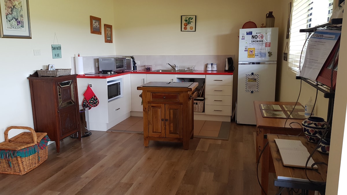 Čudovita nastanitev v popolnoma samostojni koči s panoramskim razgledom na Barrington Tops. Ločena spalnica z zakonsko posteljo in kopalnica z masažno kadjo, dobro opremljena kuhinjska niša in bivalni prostor, štedilnik in hladilnik polne velikosti, mikrovalovna pečica, žar, verandah in zasebni kamin. Posteljnina je na voljo. Idealno za romantičen konec tedna. Ta koča ima raztegljiv salon, če potujete s prijatelji. Na posesti, ki meri 100 hektarjev, je na voljo tudi druga nastanitev, ki je primerna za zagotavljanje zasebnosti.