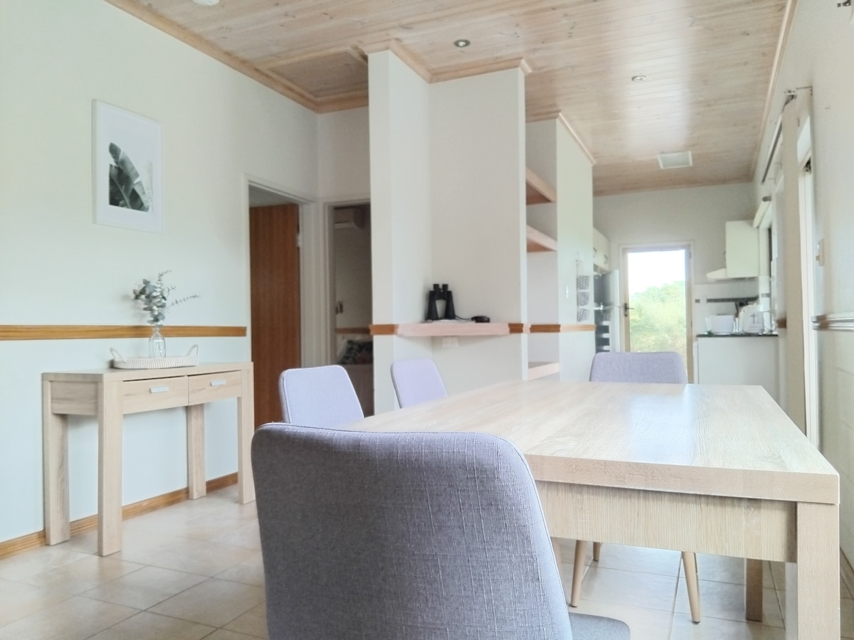 Litoria je paviljon, ki se nahaja v bližini rezervata, približno 150 m od plaže. Navdušeni boste nad mestnim vetrcem in živahnim jatom, ki se odpira, da zajamete morski vetrc. Z dvema spalnicama in 1,5 kopalnicami, brezplačnim Wi-Fijem in popolnoma ograjenim dvoriščem, Litoria zagotavlja popoln oddih za pare ali majhne družine (vključno s kosmatinčki). Otroci imajo radi brezplačno blazinico, skate park in igrišče (5-10 min hoje) ter brezplačen dostop do vodnega centra. Povprašajte nas o naših brezplačnih dovolilnicah za bazen!