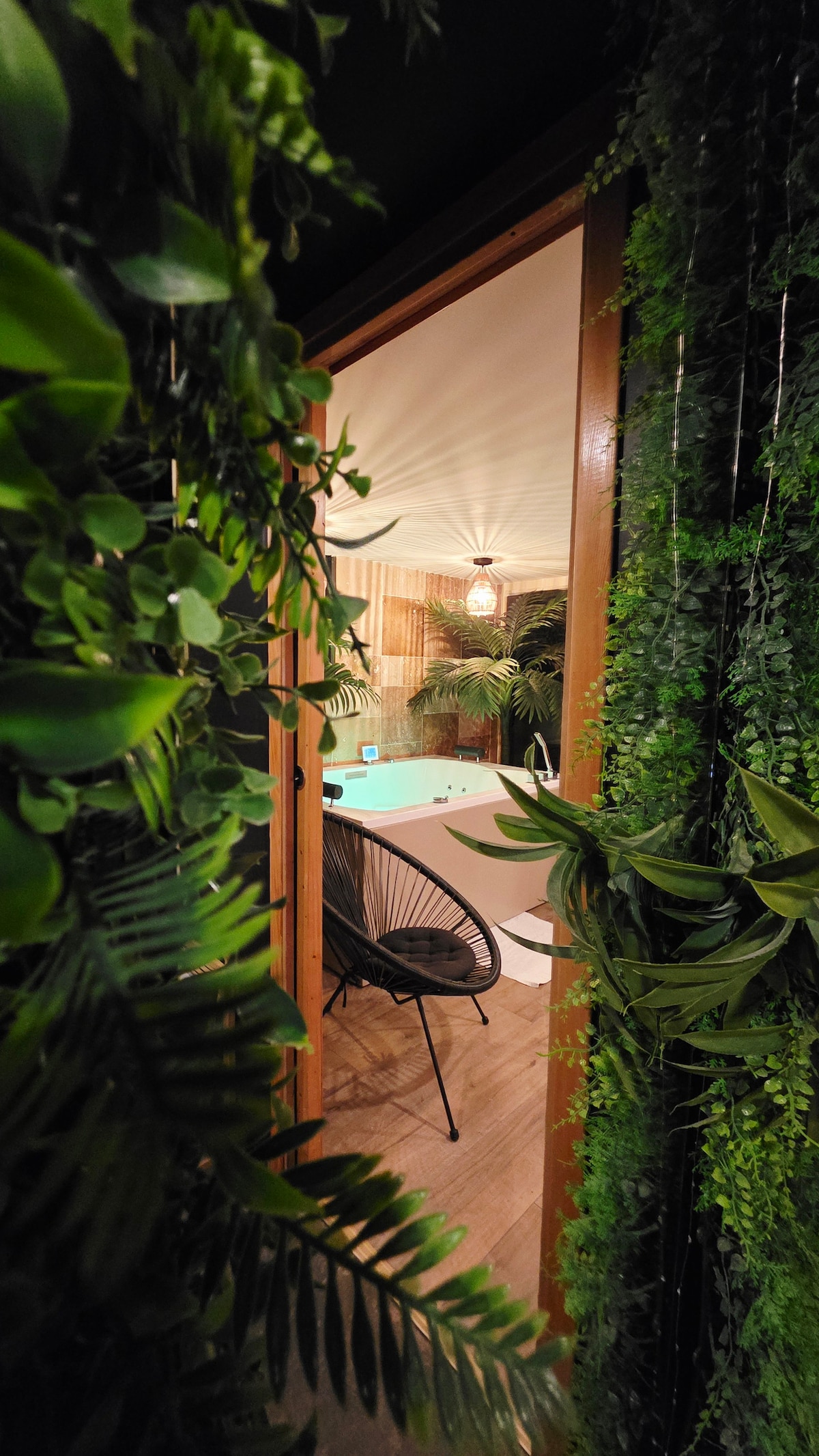 Privoščite si brezčasen oddih v tem romantičnem in atipičnem kokonu, ki je zasnovan za pare, ki iščejo zasebnost in izjemne trenutke. • velika zakonska postelja za udobne in sladke noči • Zasebna balneo kopalna kad, ki je kot nalašč za deljenje trenutkov sprostitve • Eleganten kamin za toplo in romantično vzdušje. • Tantra kavč, zasnovan za raziskovanje sokrivnosti in povezanosti • Prefinjena dekoracija, ki meša čar in udobje