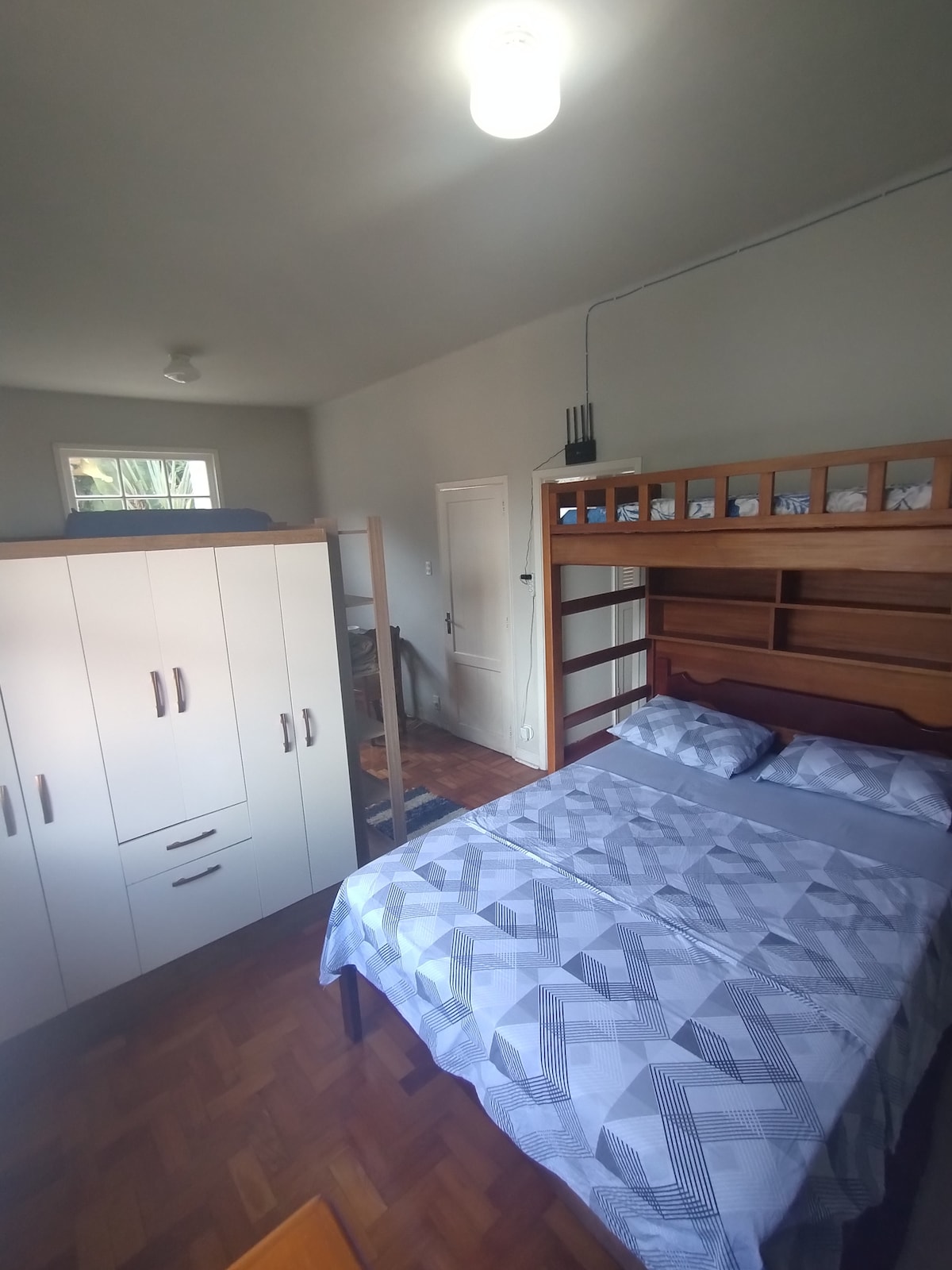 Esqueça de suas preocupações neste lugar espaçoso e tranquilo. Ótima localização, a 500 m do Hotel Quitandinha. Rua calma, local familiar, excelente espaço. Ar condicionado, TV Smart de 42”, aproximadamente 100 canais, Wi-Fi, Água Quente nas torneiras e chuveiro. Tem ainda microondas, frigobar, cafeteira, cabideiro, filtro de água elétrico (com água gelada), cama queen e bicama, 4 travesseiros com fronha e 4 cobertores e estacionamento para 1 vaga coberto.