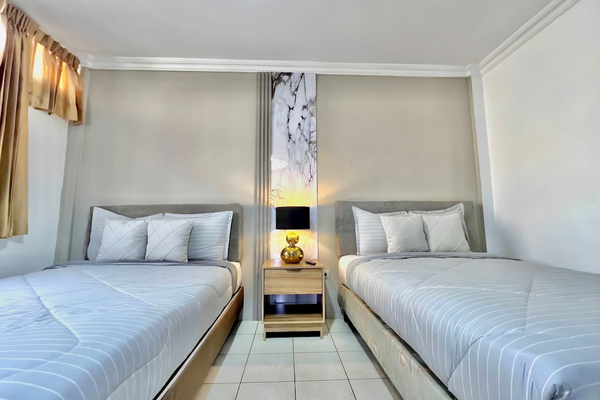 Dobrodošli v svojem prenočišču, ki je daleč od doma! Naša suita je popolno prenočišče za vaše bivanje, nahaja se poleg dveh nakupovalnih središč in z brezplačnim parkiranjem. Uživajte v našem udobnem prostoru z dostopom do hitrega Wi-Fi-ja, televizorjem za zabavo in delovnim mestom, da boste med potovanjem še naprej produktivni. Poleg tega je naša suita brezhibno čista z vročo vodo, ki je na voljo ves čas. In ne skrbite za varnost, imamo non stop stražo.