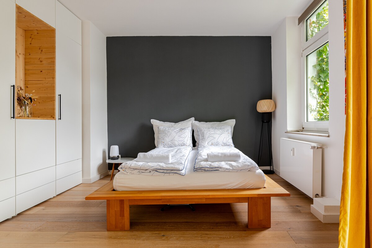 Appartement im kernsanierten Altbau von 1910, 3. Obergeschoss, hohe Decken, großzügiges Bad, moderne Einrichtung und Parkettfußboden. Das Appartement liegt im quirligen Stadtteil Flingern. Im Umfeld befinden sich eine große Anzahl an Cafés, Restaurants und kleinen Läden. Die nächste Straßenbahnhaltestelle ist ca. 150 m entfernt. Wir gehören zum Stadtzentrum und somit gilt bei uns die Anwohnerparkregelung. Bist du mit dem Auto unterwegs, zeigen wir dir gern wie und wo du parken kannst.