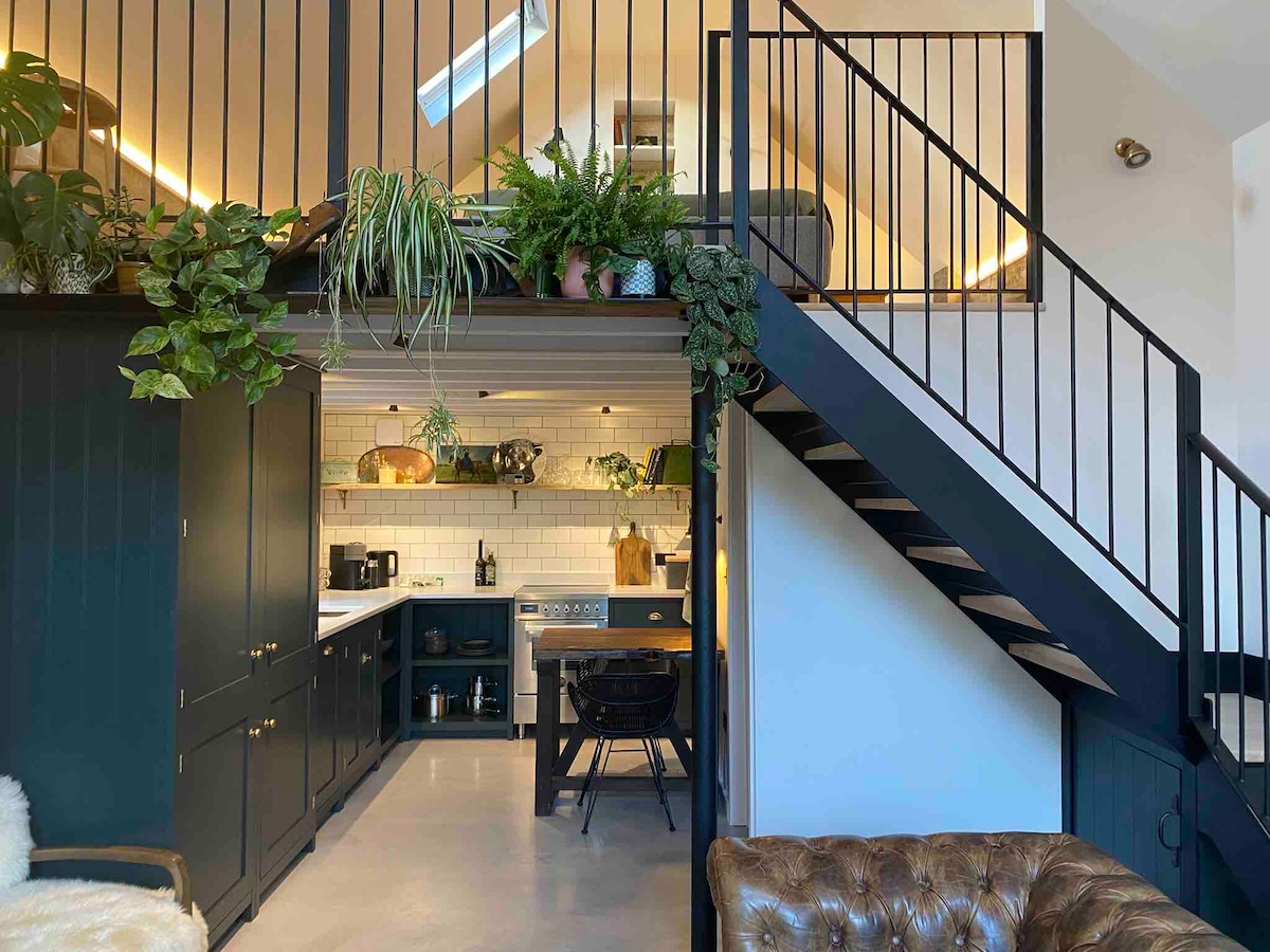 Čudovito kmetijsko poslopje, preurejeno v visokokakovostno in stabilno stanovanje, ki se lahko pohvali s prvotnimi gredami in funkcijami ter spanjem 1 ali 2 osebi - na žalost brez otrok ali hišnih ljubljenčkov. Zasebna vhodna dvorana, ki je kot nalašč za shranjevanje plaščev in škornjev po enem dnevu raziskovanja našega osupljivega podeželja. V pritličju je svetlo in zračno, z visokimi stropi in številnimi okni. Dih jemajoč razgled iz stanovanja s pogledom na hleve. Udobna širša zakonska postelja (King) s kopalnico s prho v spalnici. Popolnoma delujoča kuhinja/jedilnica z odprto dnevno sobo.