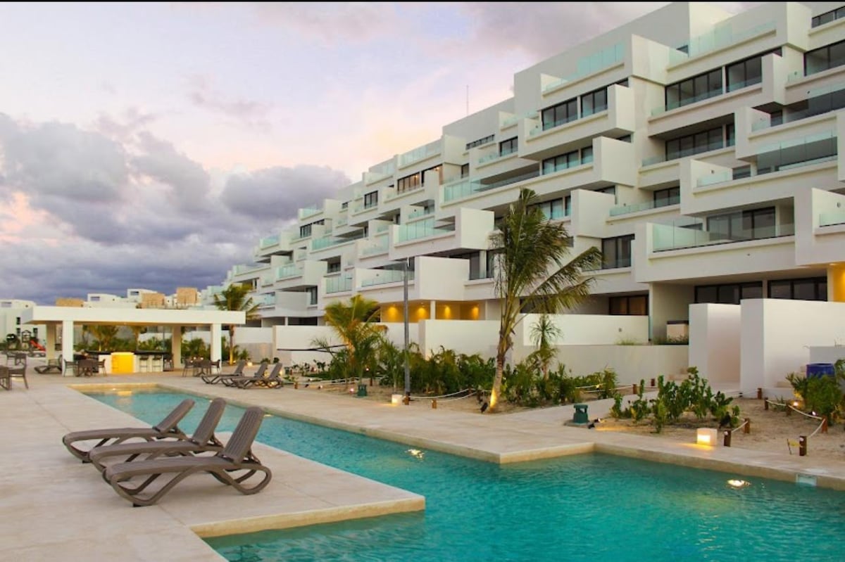 Dobrodošli v tem stanovanju ob plaži s streho in zasebnim jacuzzijem v novozgrajenem stanovanjskem kompleksu z vsemi objekti, ki si jih lahko zamislite. Ta namestitev ima pogled na ocean z vsakega okna in z vseh strani terase. Novo stanovanje se nahaja na plaži San Benito, 24,5 km vzhodno od Progresa. 15 minut vožnje do Progresa. Ker je lokacija oddaljena, ponuja vso opremo.