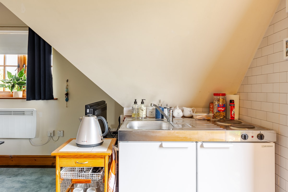 Lahek in studio Airey nad dvojno garažo v glavni hišni zemljišču nad polji, ki gledajo polja zadaj s poniji stanovalcev, dostop do stopnišča (ni primerno za tiste, ki imajo težave z gibljivostjo). Dvojne postelje Majhna kuhinja s hladilnikom,mikrovalovno pečico in dvema kuhalnima ploščama. zasebna prha in stranišče. Wi-Fi lesena tla na celotnem parkirišču in izven nje. to je idealen kraj za sprehajalce in kolesarje (kolesa so lahko zaklenjena v garaži) Dva čudovita lokalna puba, en pes prijazen
