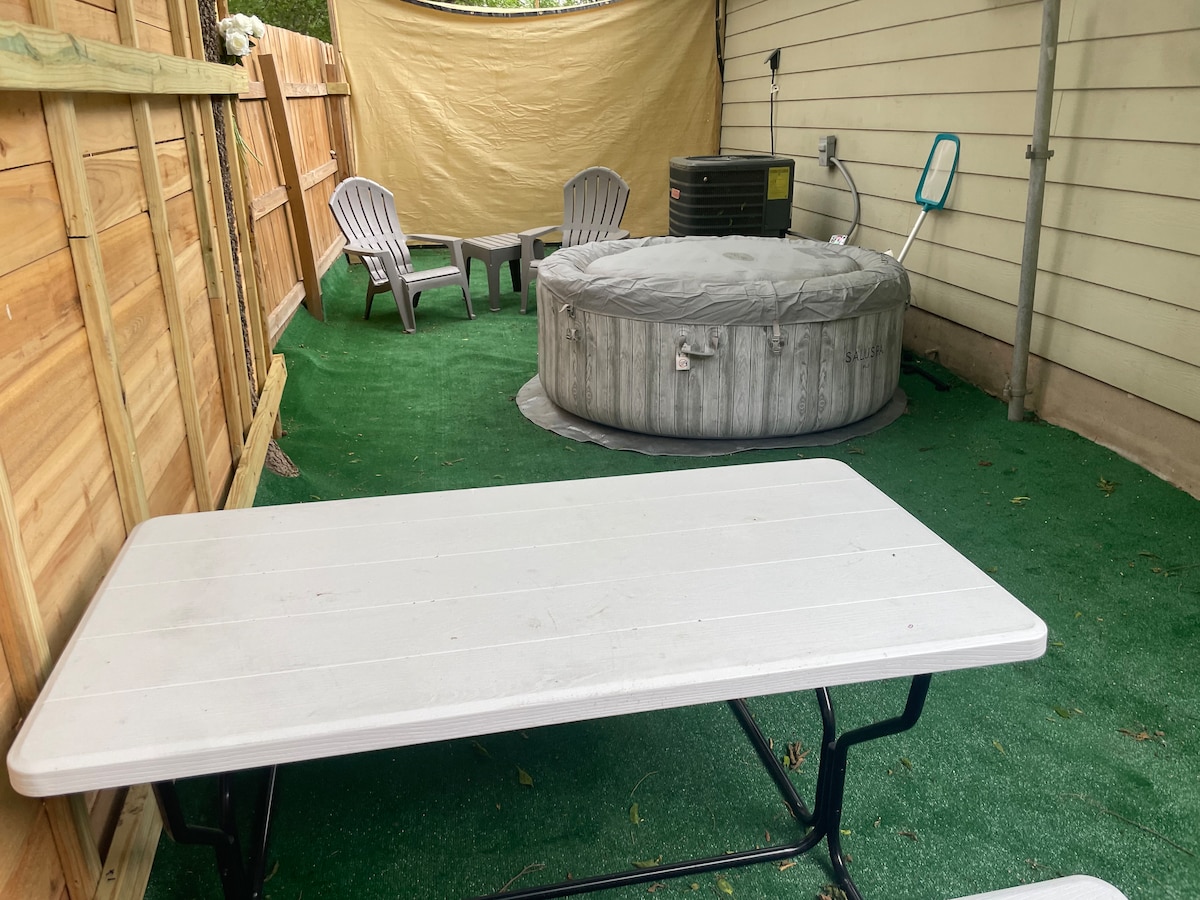 Ta mini-hiška je pripravljena za vaš naslednji obisk Austina! Nahaja se v nekaj blokih od UT, Moody Center in nogometnih/ baseball igrišč ter DT. Všeč vam bo to osrednje mesto. Sprehodite se do več ducat restavracij vzdolž ulice Manor Road ali pa kolesarite do mesta in se z mojimi kolesi odpravite na pohod in kolesarske steze. Majhna blazinica lahko sprejme NAJVEČ 2 osebi. Ima klimatsko napravo, prho, kahlico, kuhinjo, posteljo in nekaj presenečenj. Ta priljubljeni kotiček vam bo všeč in se želite vrniti za vse vaše obiske. VELIKA IN VISOKA morda ne bo ustrezala kopalnici