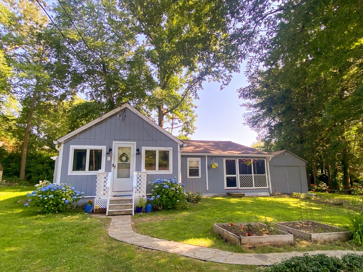 LGBTQ prijazno. Prostorna dodatna stanovanjska enota našega bungalova iz leta 1915 ponuja parkirišče na dovozu, zasebni vhod, sončno sobo, spalnico z zakonsko posteljo, kopalnico v spalnici, kuhinjsko nišo s hladilnikom, mikrovalovno pečico, aparat za kavo, opekač kruha. Sprostite se v postelji s 40-palčnim HDTV-jem z Amazon Prime, HBO Max, Netflix, premium kabelsko televizijo. Uživajte v zasebnih vrtovih ob soncu, preberite knjigo ali skodelico kave. Kratka vožnja do 4 vinogradov, gledališča in železniške postaje. Nisem odgovoren za Wi-Fi.