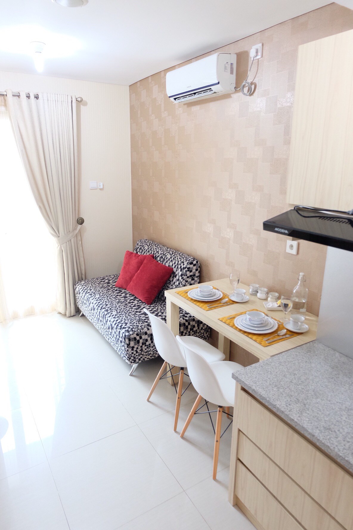 Novo in udobno urejeno studio stanovanje nad nakupovalnim središčem v osrčju Vzhodne Jakarte. Lokacija je v bližini Kuningana in Centralne Džakarte. Najboljše prenočišče po dostopni ceni! Uživajte v naši zakonski postelji velikosti, Smart TV (vklj. z Netflix) s hitrim Wi-Fijem, tušem z vročo vodo, dobro opremljeno kuhinjo in 24/7 varnostjo. Naš studio v bližini Banks, restavracije, pralnice, supermarketi in tudi kino. Imeli boste tudi račun za bazen, telovadnico in košarkaško igrišče.