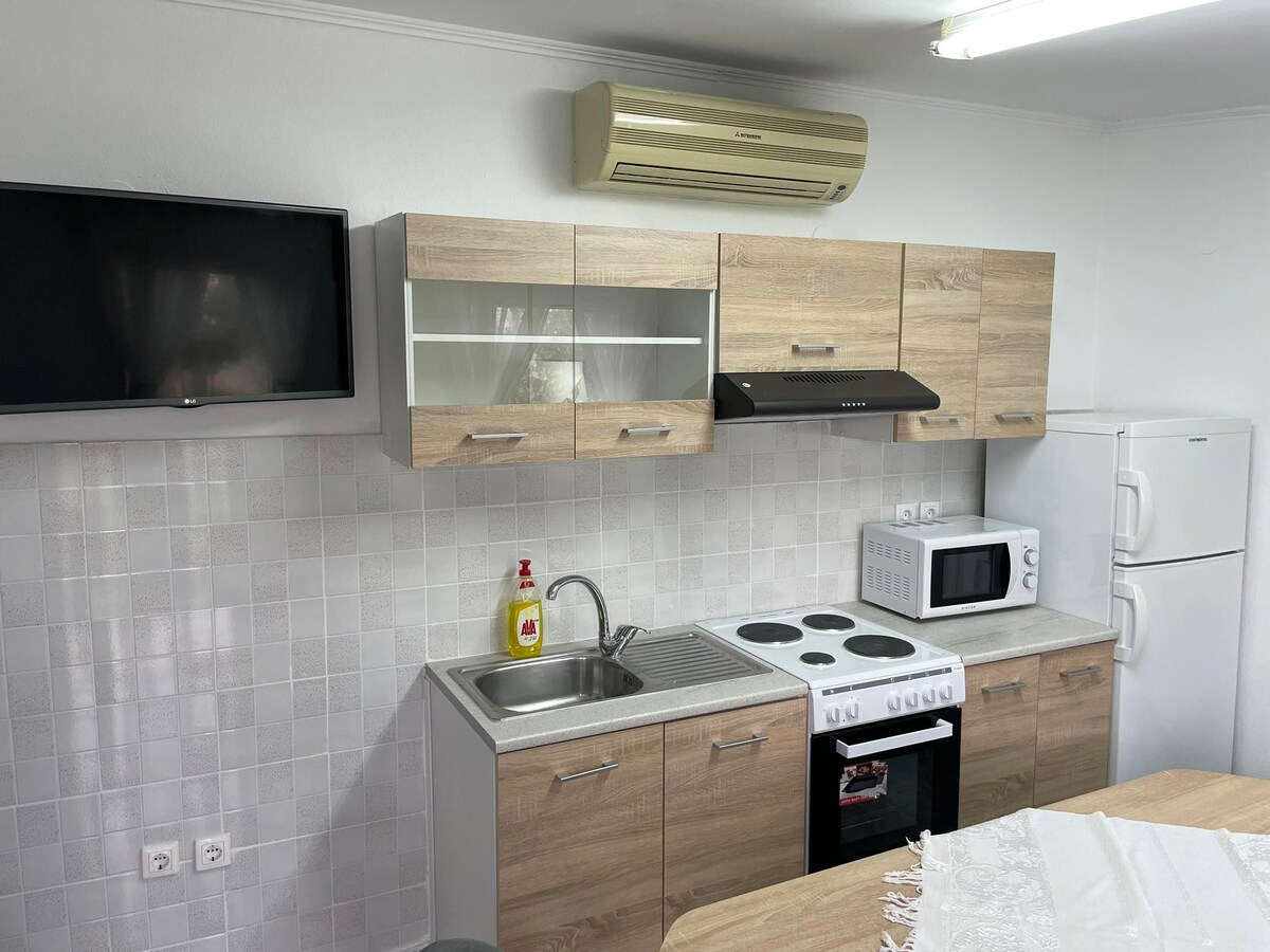 Pozabite na svoje skrbi v tem prostornem, družini prijaznem in mirnem prostoru. Apartma se nahaja sredi zelene in je primeren za pet oseb. Na velikem vrtu (5000 m2 parcele) so borovci, oljke in veliko različnih sadnih dreves. Poleg tega imamo žar - prostor in več možnosti jedilnice, ki jih lahko hkrati uporabimo tudi kot sedežne in počivalne možnosti. Objekt ima tudi lepo zunanjo prho.