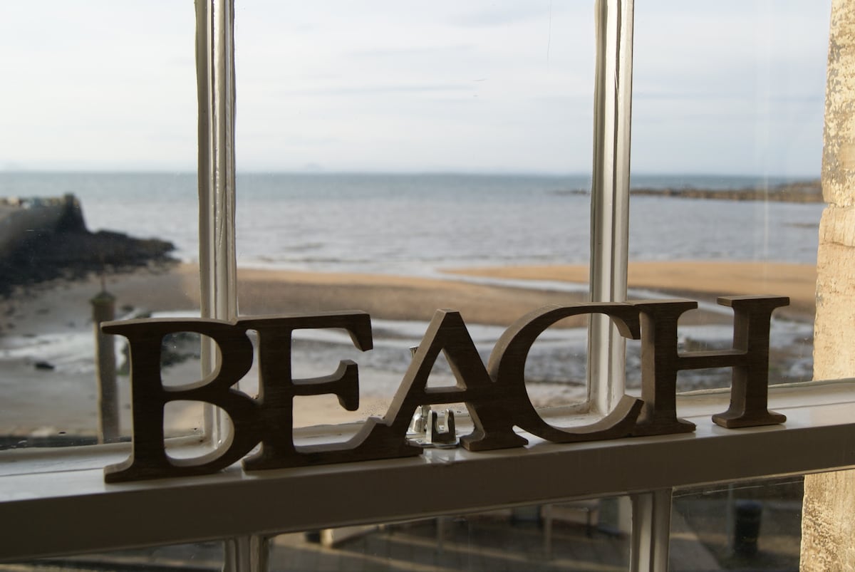 Obala je le nekaj korakov stran od obalne poti. Spodaj je kuhinja z garsonjero, ki vodi do konservatorija/jedilnice na eni strani,komunalne sobe in stranišča/prhe na drugi. Dnevna soba/jedilnica je prostorna in svetla z veličastnim razgledom na morje in udobnim štedilnikom na drva, kopalnico in hodnikom. V pritličju je dvojna garsonjera z osupljivim razgledom na morje nad Firth of Forth in sobo z zakonsko posteljo. Majhen vrt ob obali s sedeži in teraso v ozadju. 20 minut vožnje stran od St. Andrewsa