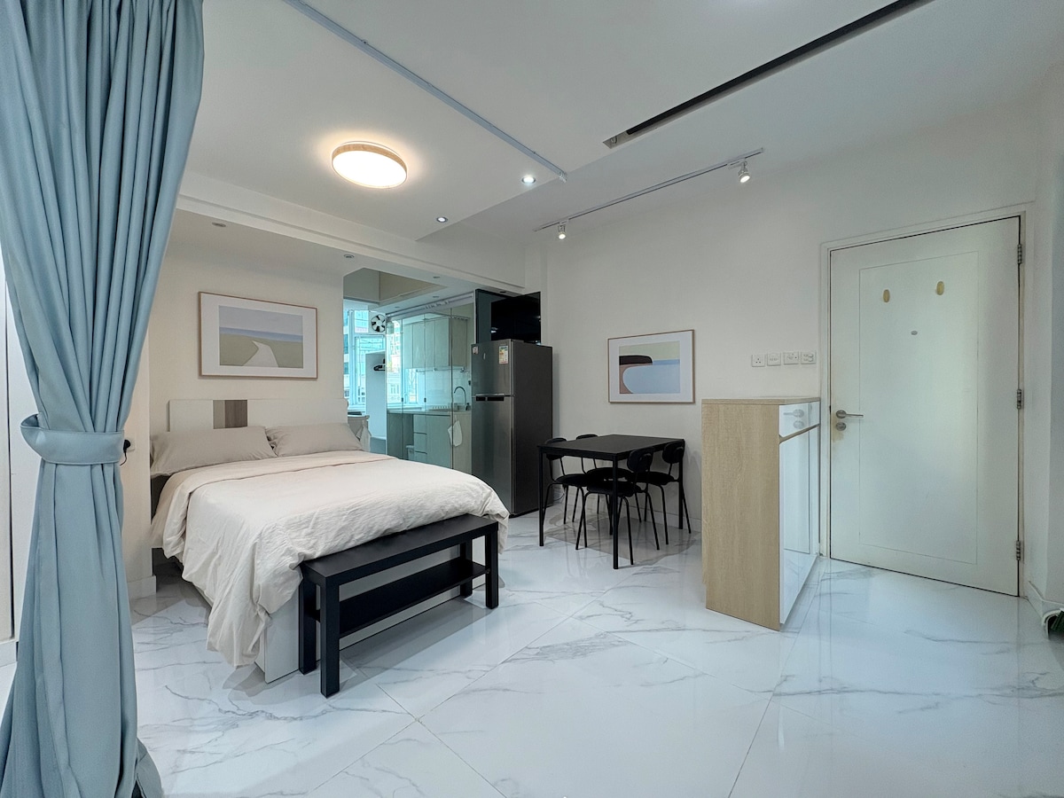 【大坑靜謐綠洲|清新系開放式單位|全配拎包入住】 隱身於港島大坑低密度住宅區,這間開放式單位完美融合都市便利與靜謐生活。 全屋配備2人坐沙發, 日系茶几, Queen size 床,電視。開放式廚房配置IH電磁爐雙門靜音冰箱。 單位樓下即有24小時自助洗衣店,步行3分鐘即達大坑傳統美食圈,何弼記雞蛋仔與炳記茶檔飄香巷弄;10分鐘步程接軌銅鑼灣時代廣場商圈,社區穿梭巴士直達天后港鐵站。單位位處唐樓頂層(附電梯),夜間可遠眺維港星星燈火,週末步行至蓮花宮花園享受都市罕見的鳥語晨光。 現可預約參觀,月租含基本管理費,適合追求生活質感的單身貴族或旅港外派人士。單位需上樓梯。