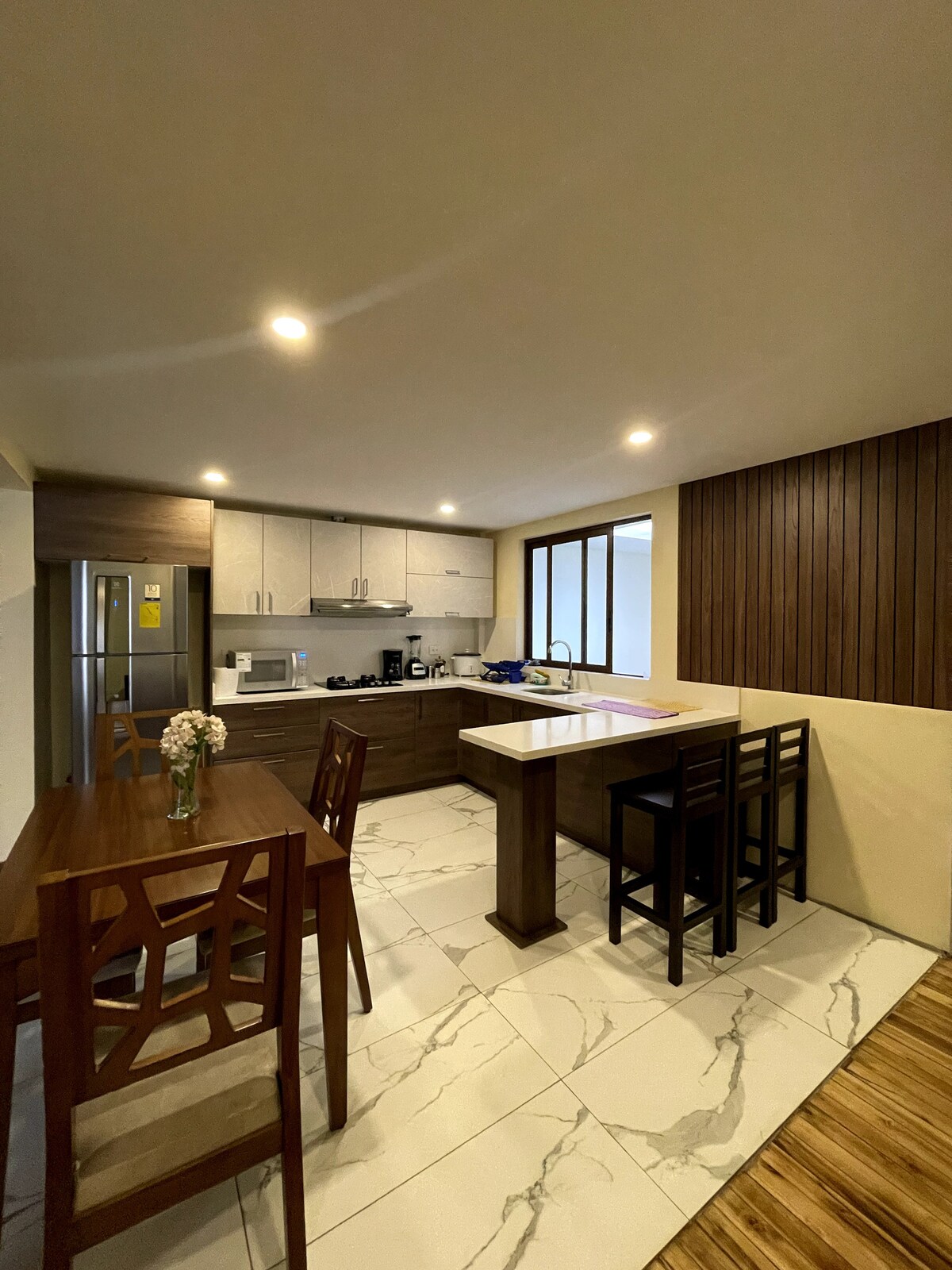 Čudovit apartma, ki se nahaja tik ob parku La Carolina. Predstavljajte si razgled iz 17. nadstropja, ne glede na to, ali se sproščate na kavču ali v postelji. Ponuja popolnoma opremljeno kuhinjo, hiter internet in počutili se boste kot doma. Enostaven dostop do podzemne železnice, nakupovalnega središča El Jardín in CCI. Bazen – savna – masažna kad Dobro opremljena telovadnica Neverjetna strešna terasa 60-palčni pametni televizor – Netflix Indukcijska kuhalna plošča Hladilnik Pralnica v stanovanju Mikrovalovna pečica Zavese za zatemnitev Likalnik za oblačila