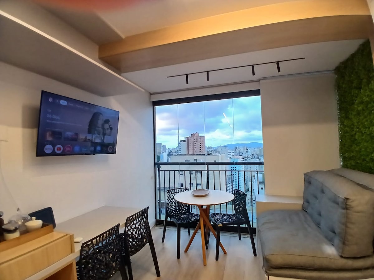 Apê novo e tech, perto Paulista, 7 min metrô c/ ar