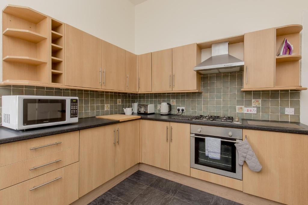 V tem prestižnem in priljubljenem razvoju ne boste našli večjega enosobnega stanovanja. Svetel dnevni prostor, ki se nahaja v drugem nadstropju in ga je okusno opremila oblikovalka Cate Warren, ima okna od tal do stropa, ki zagotavljajo obilo naravne svetlobe. Zgodovinske turistične znamenitosti, kot sta Grassmarket in staro mestno jedro Edinburga s svojim gradom, so oddaljene le nekaj minut hoje.