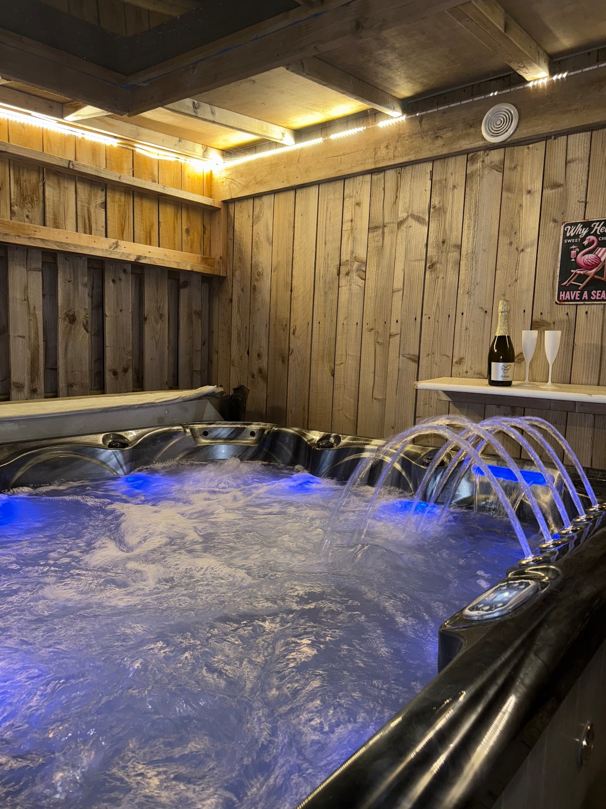 Kick back and relax in this calm, stylish space. With exclusive use of hot tub. Only 15min to Edinburgh city centre by train and 1hour to Glasgow centre Regular bus service into city centre (every 15min) a 30min journey. 5min walk to local shops, bakery, pharmacy and pub. 7min walk from water of leith walk way. Harlaw reservoir and the pentland hills are only 12min drive away or around an hour walk. Close to Herriot watt university- 5 min drive or 25min walk 15min from Edinburgh airport on