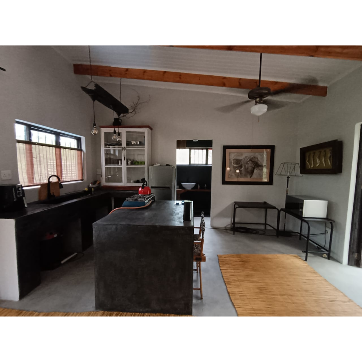 Escape to our cozy one-bedroom unit nestled in the heart of a South African game reserve! Immerse yourself in the serenity of nature, where breathtaking sunsets paint the sky and the untamed beauty of the wilderness is your backyard.