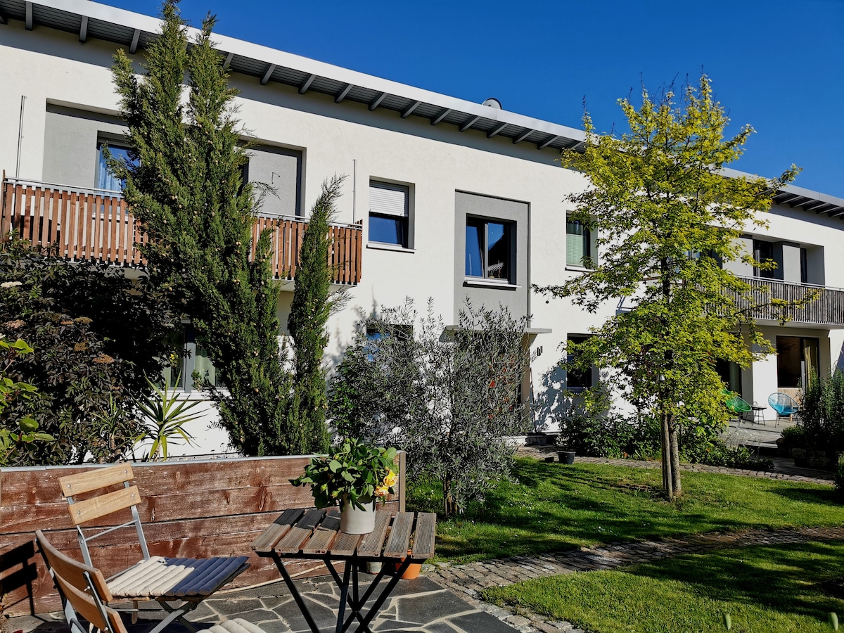 Mirno se nahaja sodobno enosobno stanovanje z dnevno kopel, parkirnim mestom in teraso - nova obnovljena majhna bivalna enota ( 3 apartmaji) ***hitri internet ** - Primerna kot „domača pisarna“ - Popolnoma opremljena in opremljena. Brisače in posteljno perilo na voljo. Vključene so vse komunalne storitve ( razen tistih, ki so tu navedene kot "neobvezne"): Neobvezno: - namestitev polnilne postaje za e-avtomobil - namestitev pralnega in sušilnega stroja.