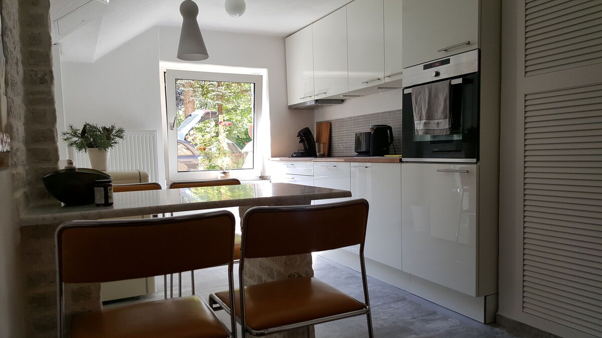 Willkommen in meinem gemütlichen Heim mit Blick in den Garten! Im März 2025 wurde renoviert und lädt somit mit den großen hellen Fenstern zum verweilen ein. Die geräumige Wohnung bietet genug Platz für bis zu 8 Gäste und ist somit ideal für größere Gruppen oder Familien. -sehr schnelles WLAN -einfaches Check in - mit detaillierter Anleitung -Handtücher,Bettwäsche und weitere Annehnlichkeiten im Bad. -Föhn & voll ausgestattete Küche zum kochen -moderne Einrichtung