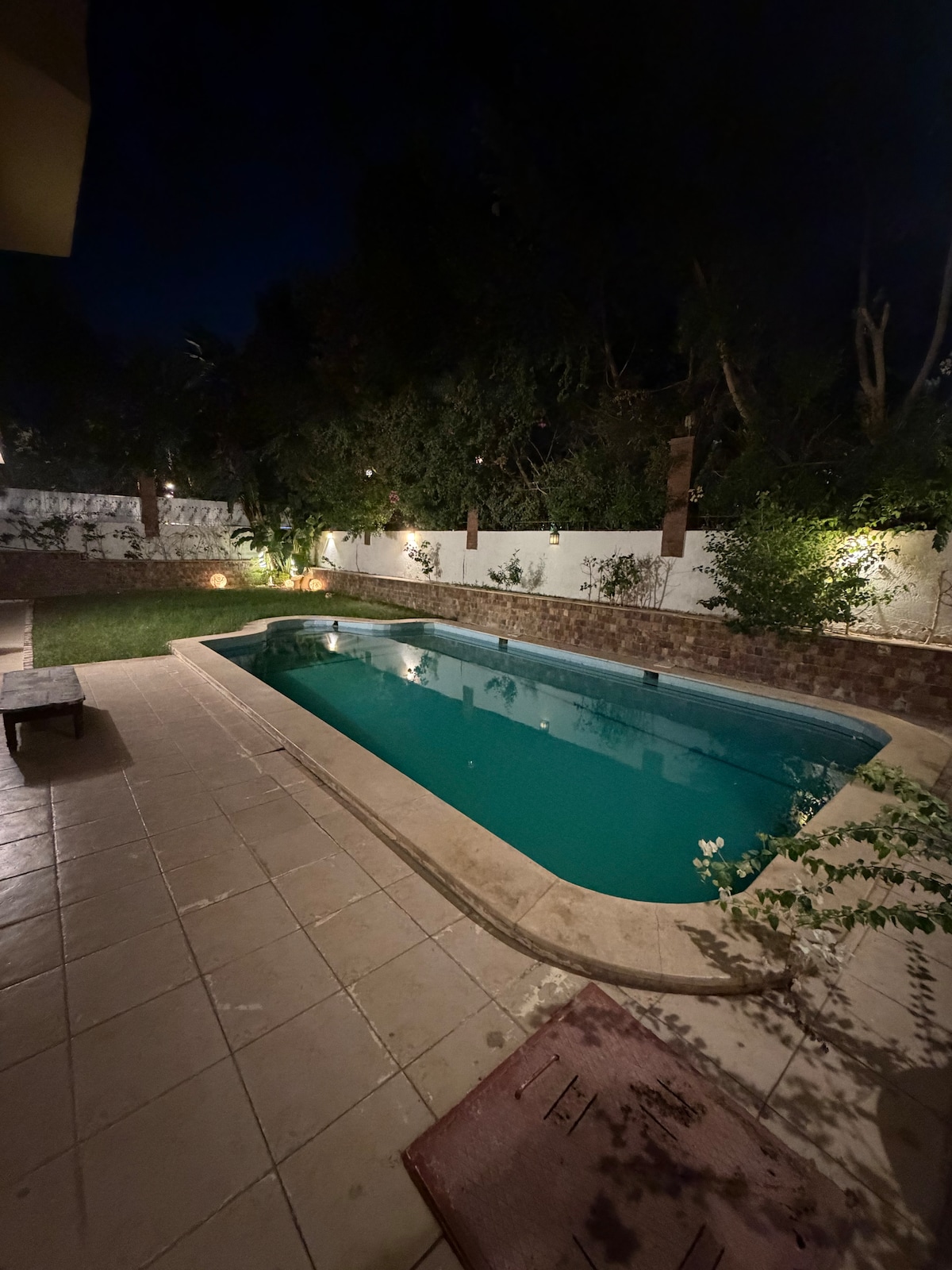 Doživite elegantno bivanje v tem trisobnem stanovanju v soseski One Kattameya. Z veliko zakonsko posteljo, štirimi enojnimi posteljami, dvema kopalnicama (ena spalnica) in prostornim vrtom s pergolo in prostorom za peko na žaru. Uživajte v notranjem kaminu ter priročnosti bližnjih trgovin in restavracij, kot so Starbucks, Abu Ouf, Adidas, Nike, Pizza Hut in KFC, vse to pa je dostopno peš. Le 15 minut od letališča Kairo in 5. naselja ter 5 minut od Maadija. Idealno za razkošno bivanje v Kairu!