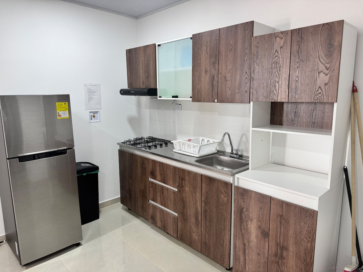 »HIŠA NA PLAŽI« Necoclí, Antioquia. Uživajte v bivališču, ki je zasnovano za skupno rabo z družino in prijatelji v mirnem vzdušju. Sodobno stanovanje v tretjem nadstropju, 120 metrov od plaže. Jedilnica z raztegljivim kavčem. Kuhinja in popolnoma opremljeno stanovanje za 6 oseb. Spalnica 1: zakonska postelja, klimatska naprava, balkon s pogledom na ocean in zasebna kopalnica Spalnica 2: dvojna paletna postelja, klimatska naprava in stropni ventilator. Družabna kopalnica. Brez nadstreška za avtomobil
