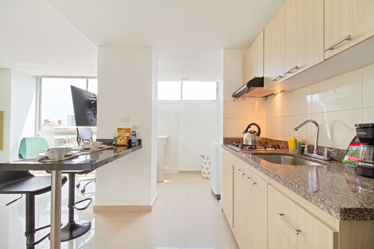 Dobrodošli v svojem domu v Barranquilli! Naš sodobni apartaestudio v 11. nadstropju ponuja mirno in prijetno vzdušje, idealno za počitek in delo. Nahaja se v bližini nakupovalnega središča Viva Mall in znanih klinik ter je kot nalašč za tiste, ki iščejo udobje in priročnost.