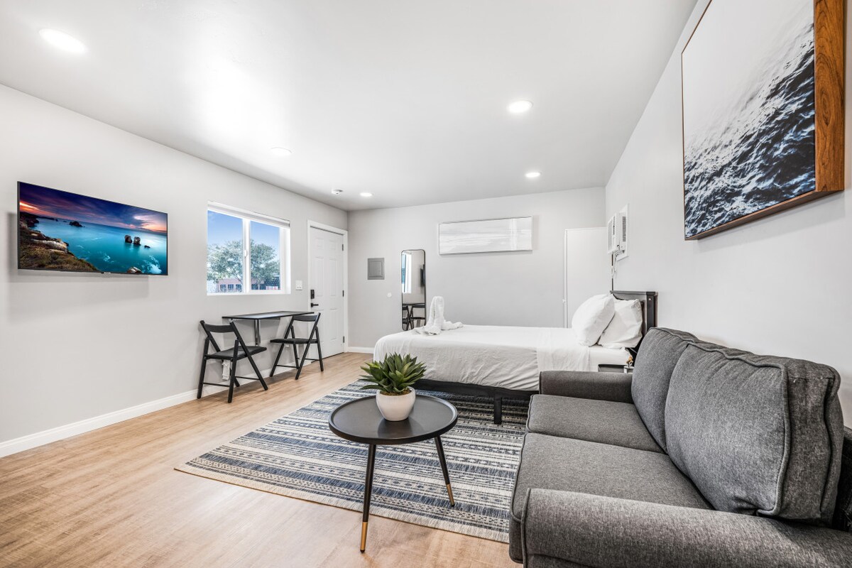 Uživajte v elegantnem doživetju v tem garsonjeri v središču mesta. Do vasi La Mesa Village se lahko sprehodite peš, kjer lahko uživate v restavracijah, kavarnah, butikih in še več. Z vsemi stvarmi, ki jih potrebujete v kuhinji, da pripravite katerikoli obrok, in terasa za uživanje v soncu v San Diegu. Skočite na voziček, da pridete kamorkoli. Želite s seboj pripeljati več prijateljev ali družine? V isti namestitvi je še en vnos, Casa de Pueblo. 20 min vožnje do plaže ali središča mesta 15 min vožnje do parka Balboa ali starega mestnega jedra